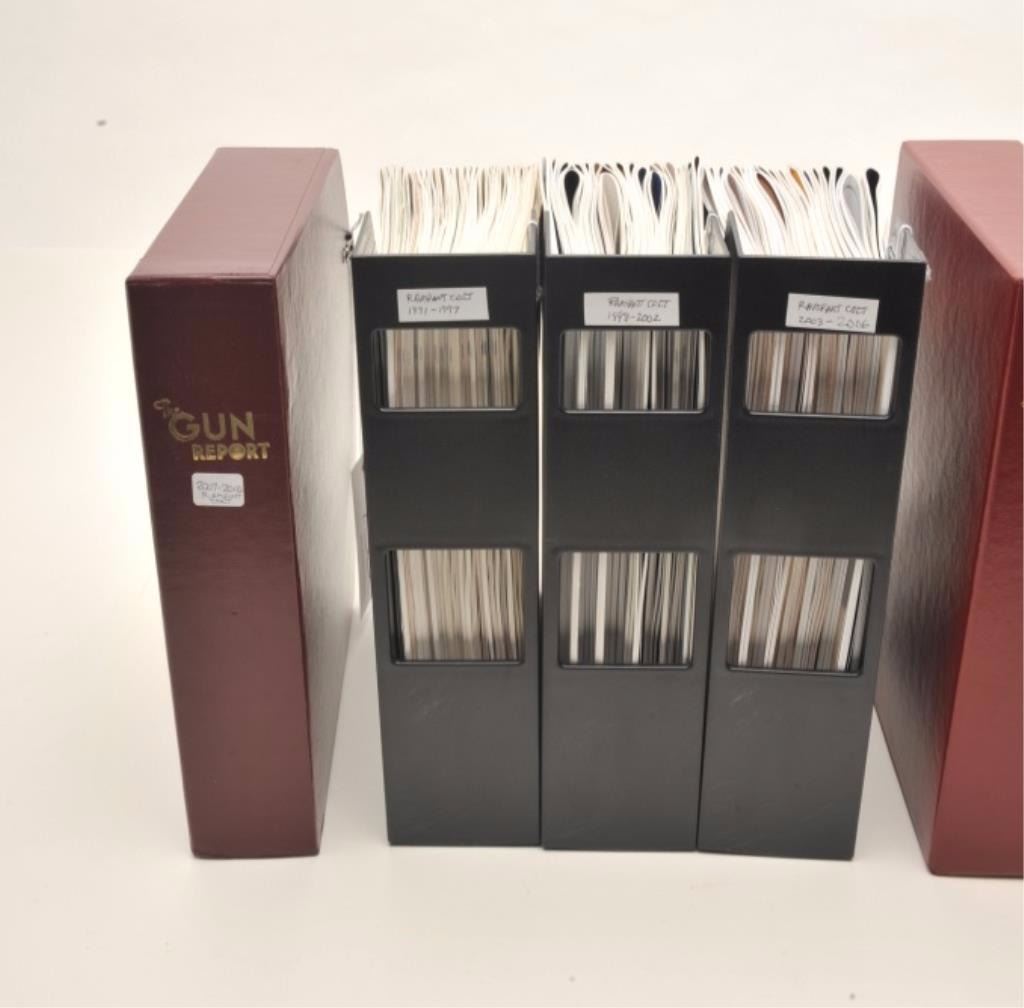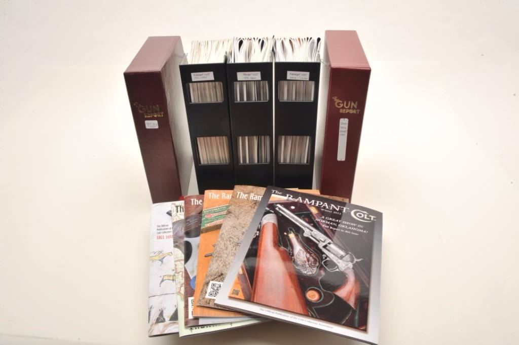 Lot of Colt Collector’s Association Rampant Colt magazine (1991 thru 2016); all 4 editions (Spring, Summer, Fall & Winter) for years 1991, 92, 93, 94, 95, 96, 97, 98, 2000, 01 thru 09, 11, 12 and 13; 3 of 4 for 1999(missing Winter), 3 of 4 for 2010 (missing Winter), 3 of 4 (missing Summer), 3 of 4 for 2015 (missing Summer), 3 of 4 for 2016 (missing Winter; not yet issued) and an extra Show Issue volume for 2004. Great reference works for the serious Colt Collector. Est.: $150-$300.