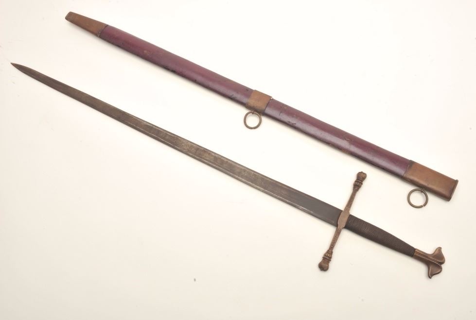 King Charles V older reproduction sword (ca. 19th to early 20th Century), approximately 41” overall with a 33.5” blade. Est.: $150-$300.