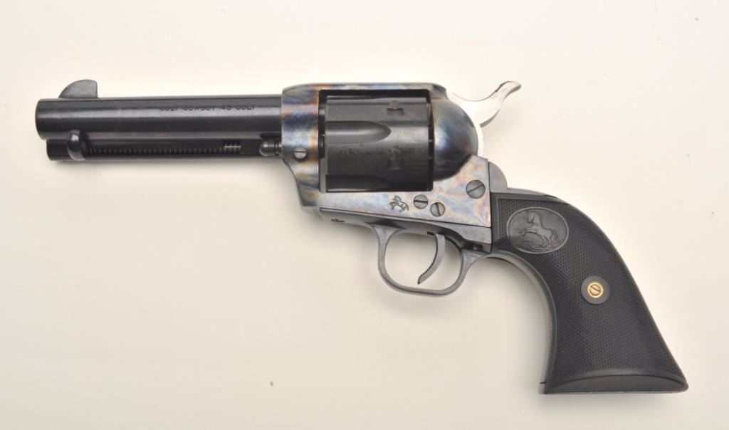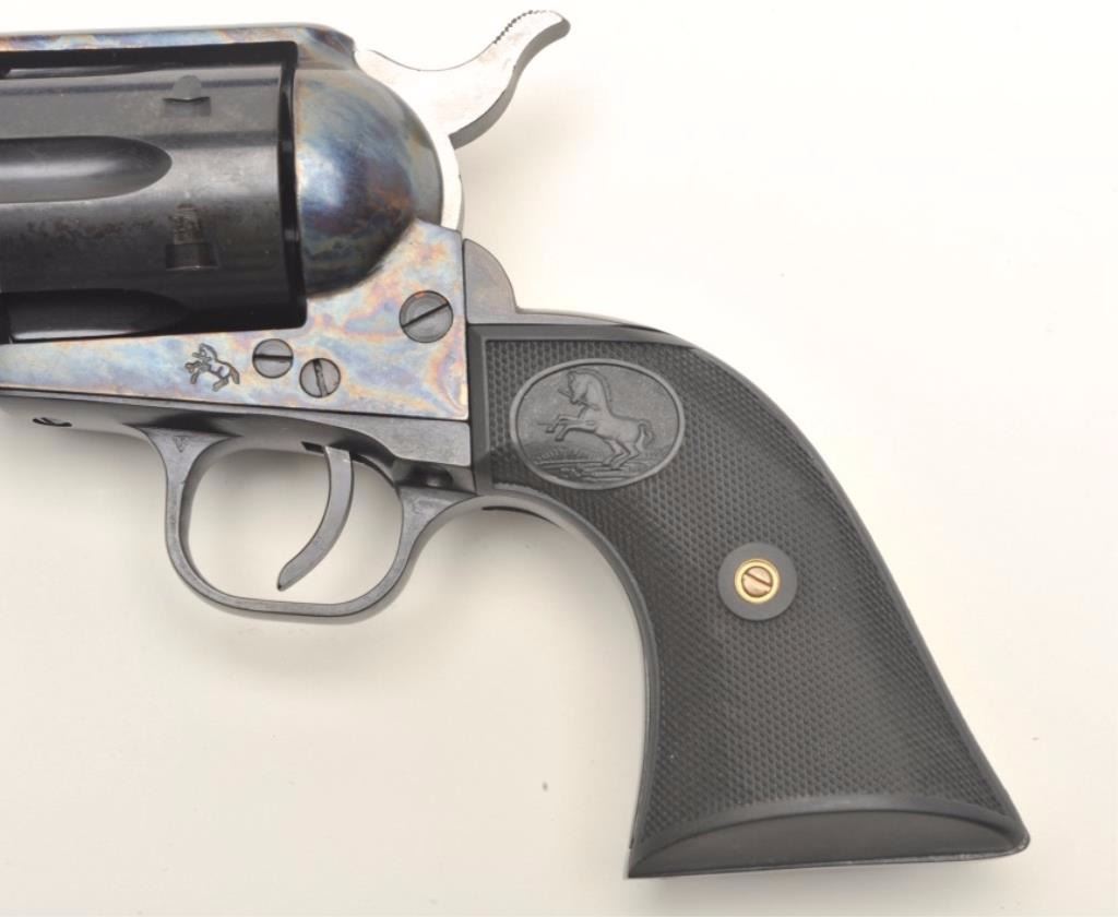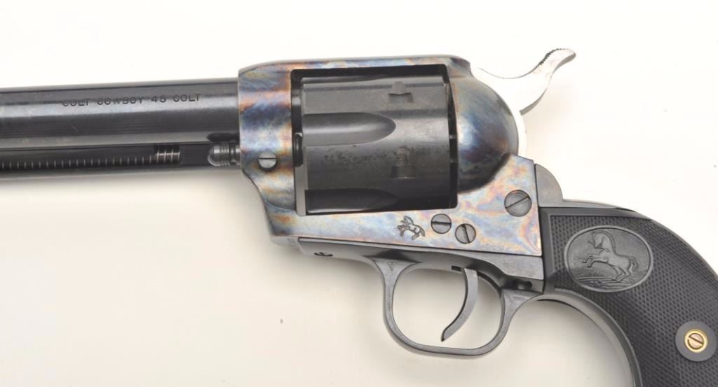 Lot 794 Colt Cowboy SAA revolver, .45 caliber, 4.75” barrel, blued and case hardened finish, checkered har