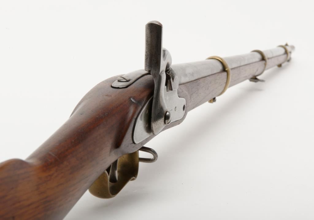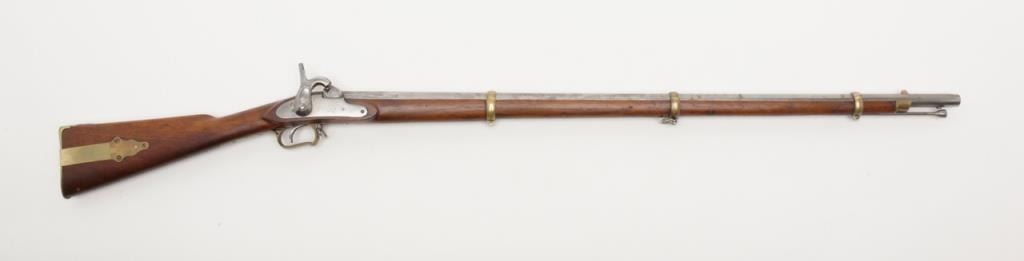 Lot 815 P. S. Justice early Civil War period rifled musket in .58 caliber showing brass mountings and patc