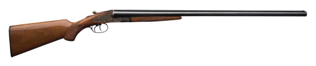 L. C. Smith 12 gauge Field Grade double barrel shotgun, 30" barrels, double triggers, standard extractors, serial #14153, with armor steel marking and no Hunter Arms address. The gun remains in fine to nearexcellent original condition showing 95-98% bright original blue on barrel, some light erosion and spotting just starting; the frame shows 90-95% case hardening toning just slightly, with beautiful rainbow colors,still fiery in some areas. The stocks are near excellent and show a couple of storage scratches, 1 or 2 of which are major. The trigger guard shows 98% blue; the gun locks tight, the bores are excellent. NOTE Hairline Crack Est.: $1,250-$2,500