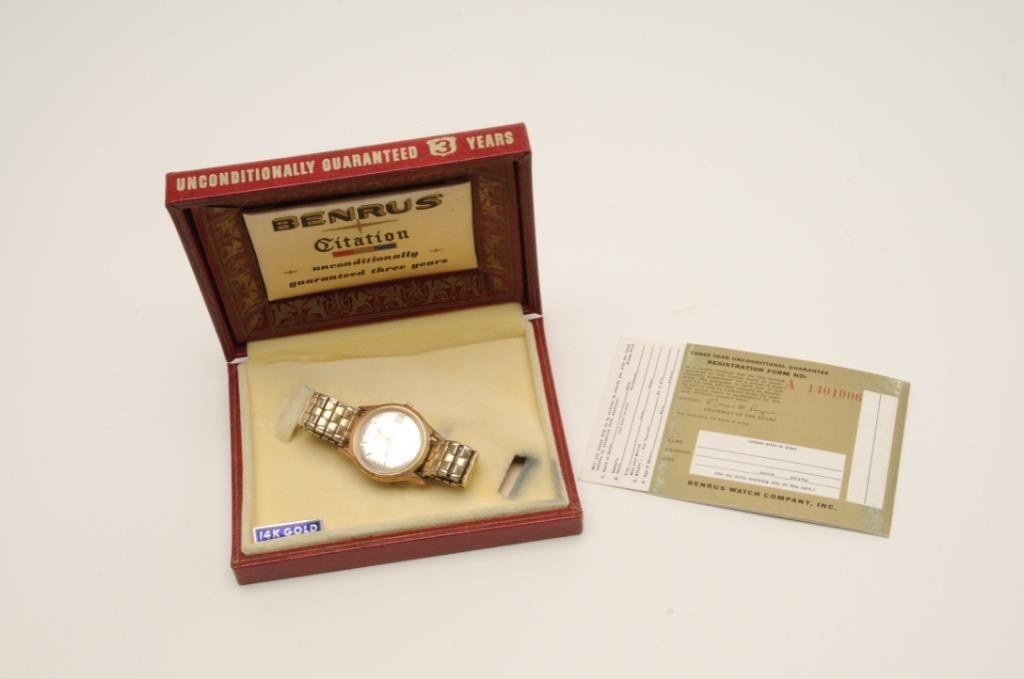 Vintage Benrus watch in box. 14K. Est.: $150-$300