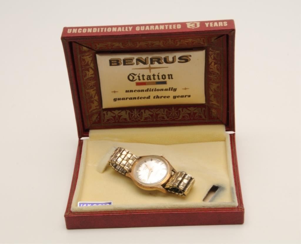 Lot 892 Vintage Benrus watch in box. 14K. Est.: $150-$300