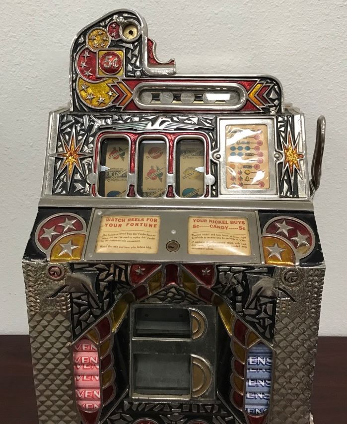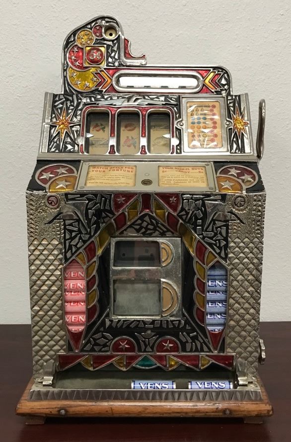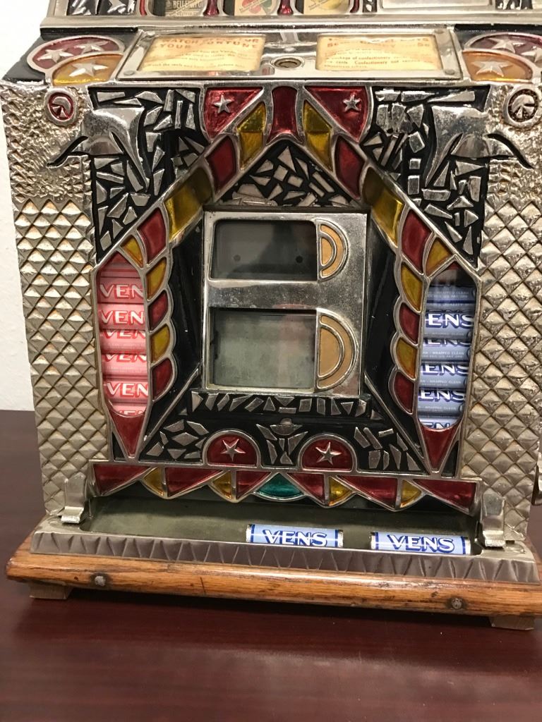 Mills F-O-K .05 cent double mint vender in excellent restored condition with key and back. Works fine. Beautiful front. Est.: $2000-$4000
