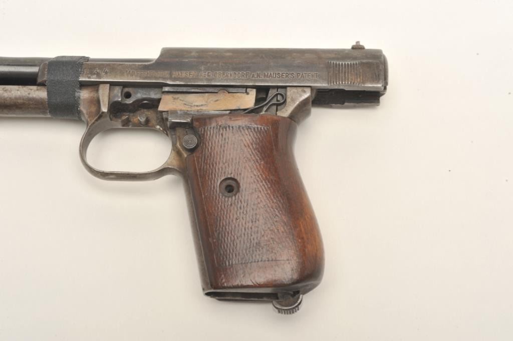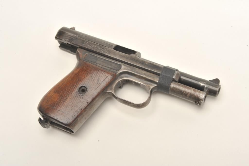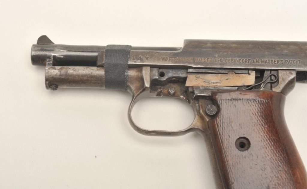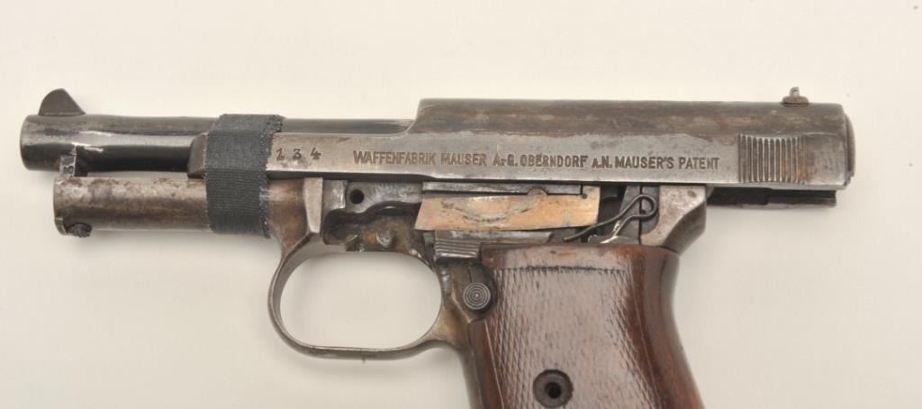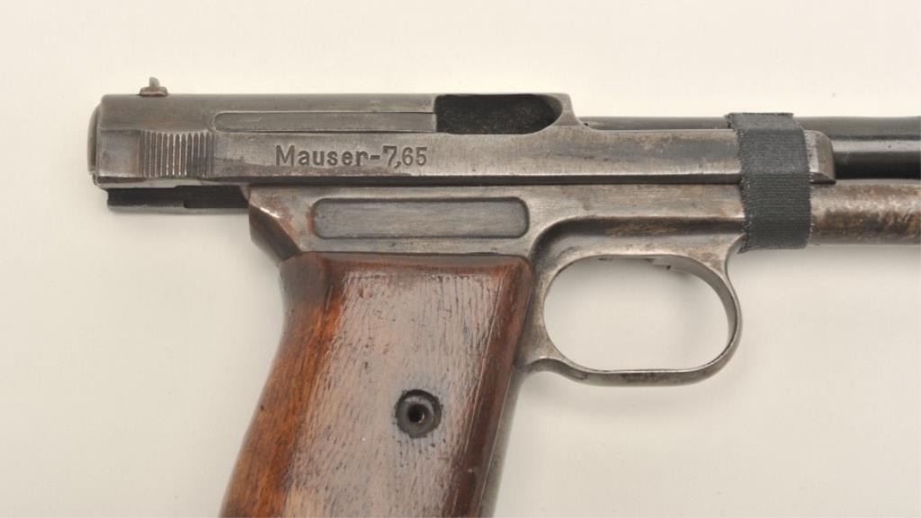 Mauser pocket pistol for parts, 7.65mm, serial #187134. The pistol is missing parts with a 3 ½” barrel, smooth wood grips and no magazine. The pistol is marked Oberndorf Mauser. Est.: $100-$200.