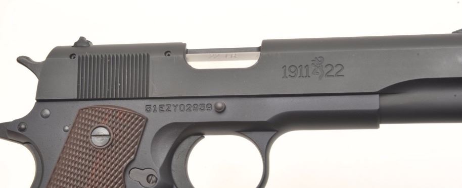 Lot 968 Browning 1911-22 Baby 1911 semi-automatic pistol, #51EZY02959. Matte black finish, plastic checker