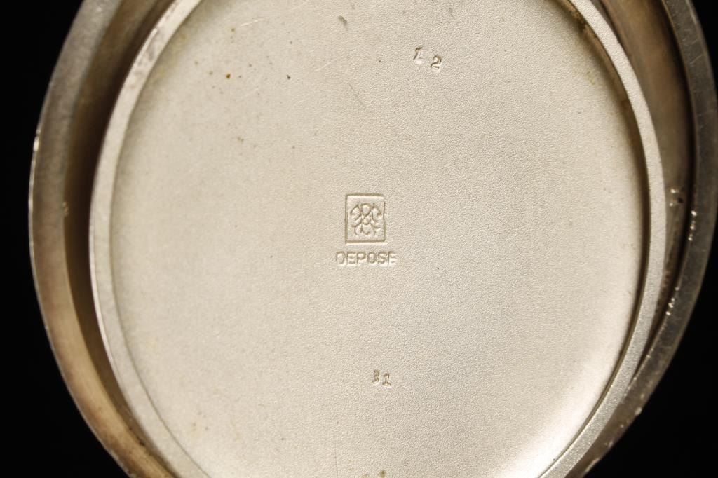 Lot 980 Large fancy open faced pocket watch, approximately 3” in diameter with Roman numeral face; not wor