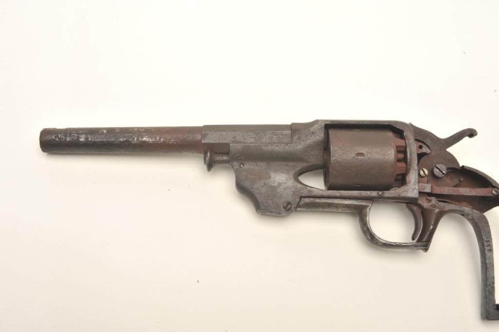 Lot 1105 Rusty relic Allen & Wheelock percussion pistol, S/N 347, missing grips and side plate; if only thi