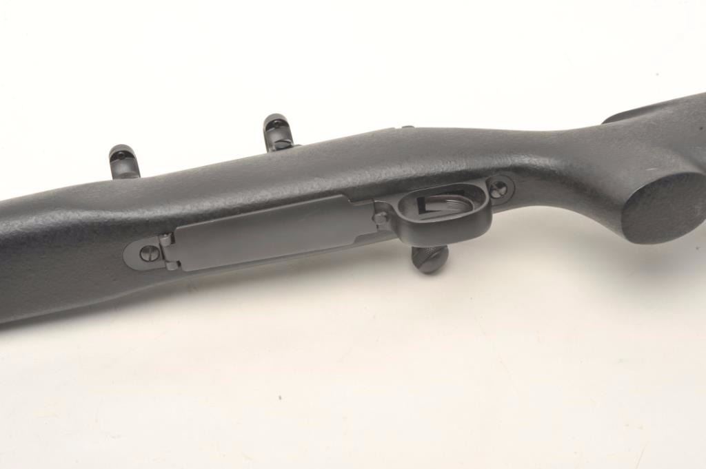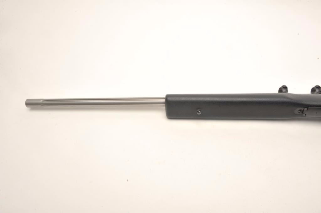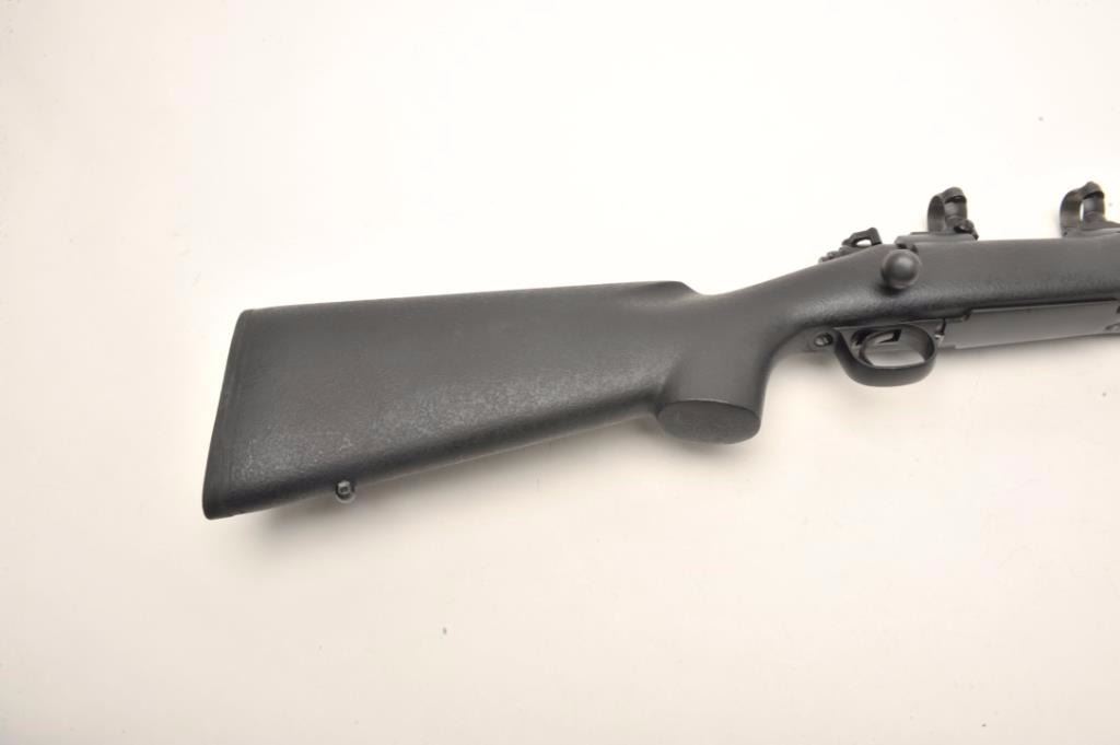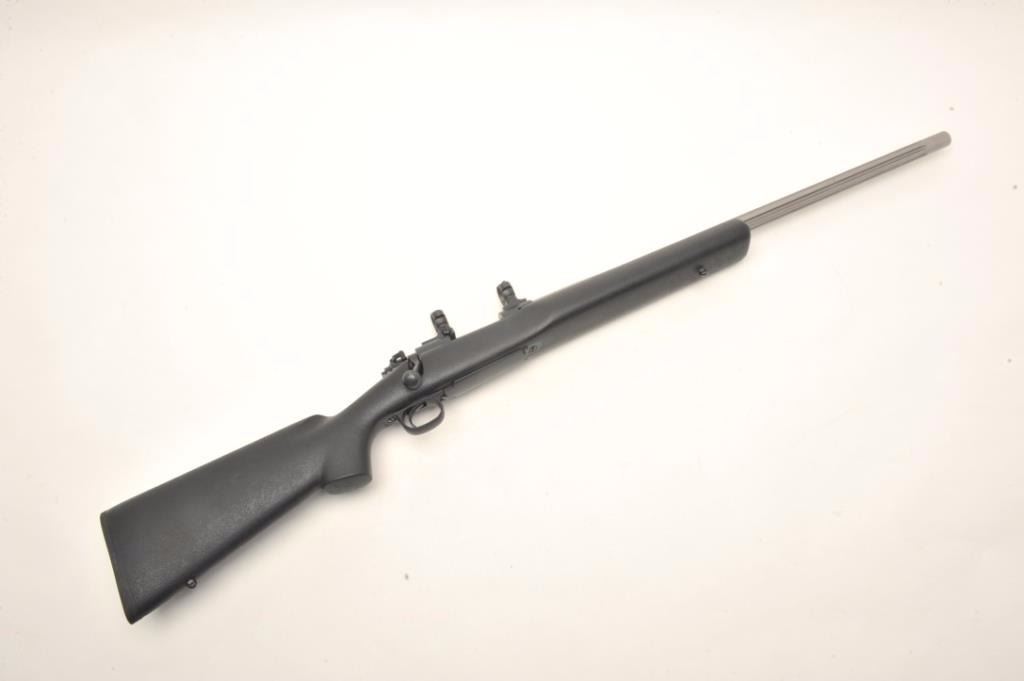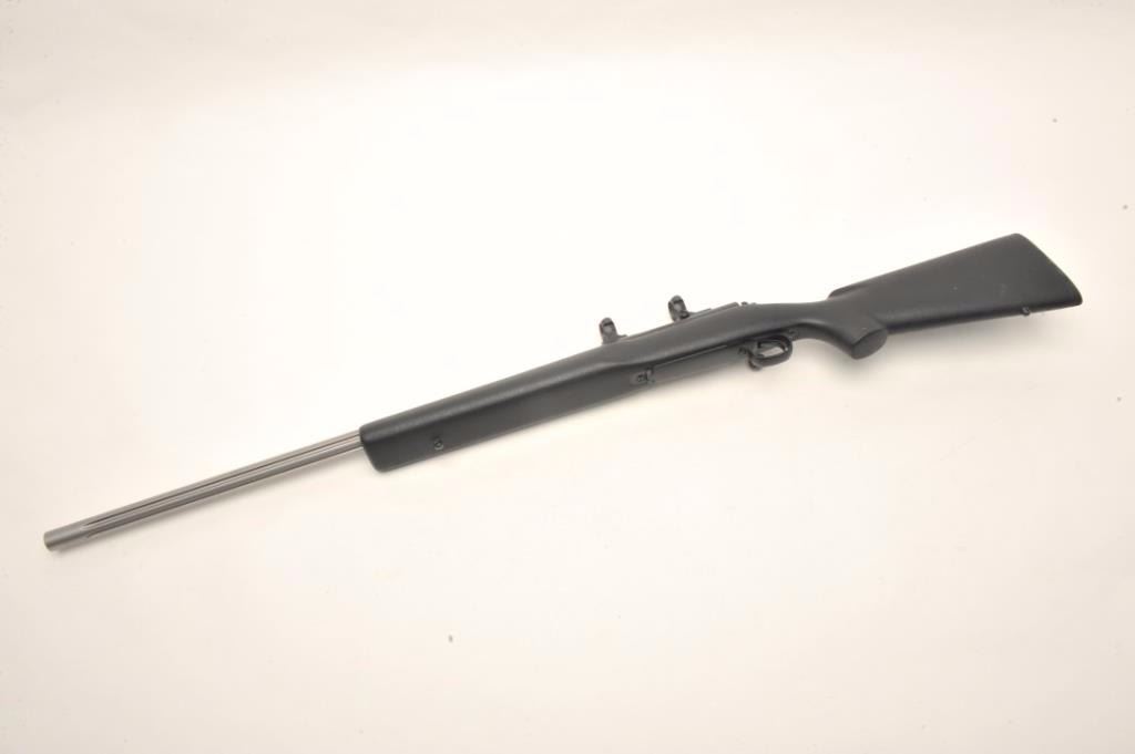 Winchester Model 70 SA, Heavy Varmint bolt action rifle with stainless fluted 26" barrel. Black synthetic stock, .308 Win cal. Serial #G2159833. Scope rings installed. Rifle is in excellent condition overall,showing little use. Est. $600-1200. (Modern)