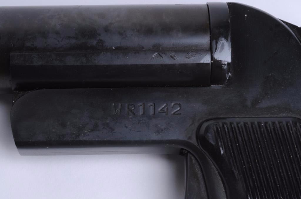 Polish flare pistol in 26.5 MM marked “WR1142”. In very good condition and dated 1966. Est.: $150-$300