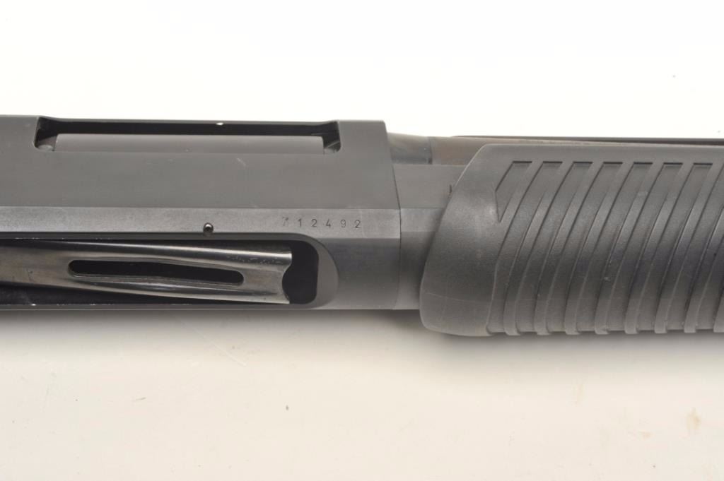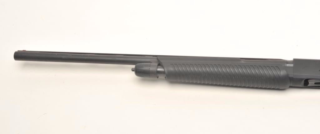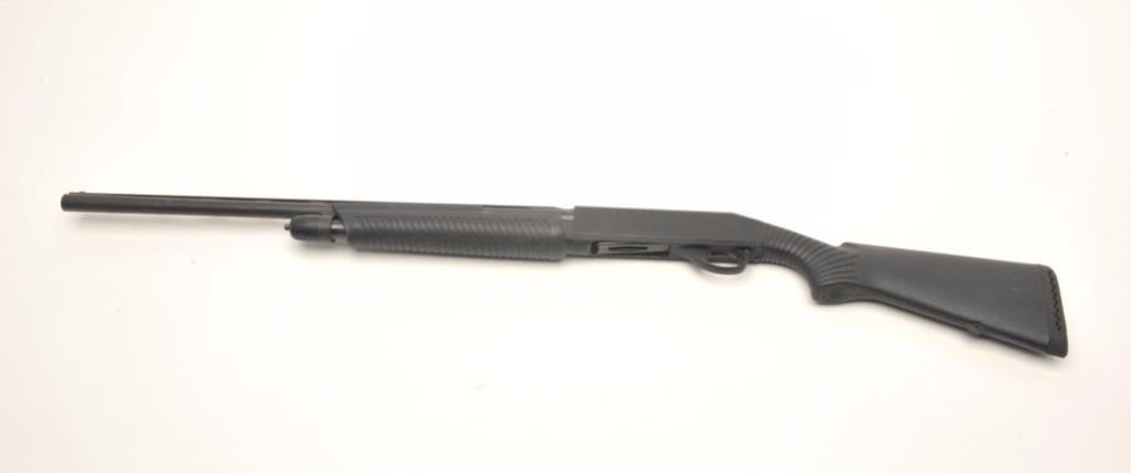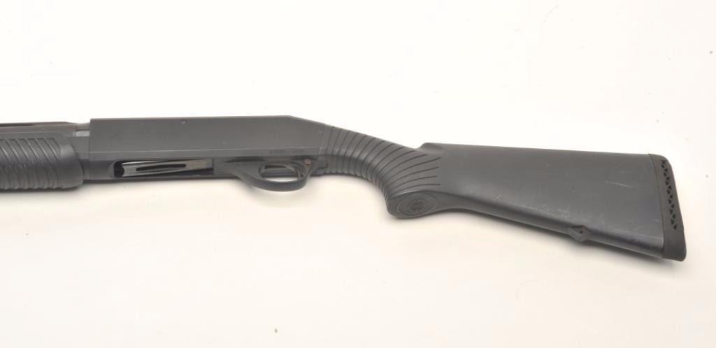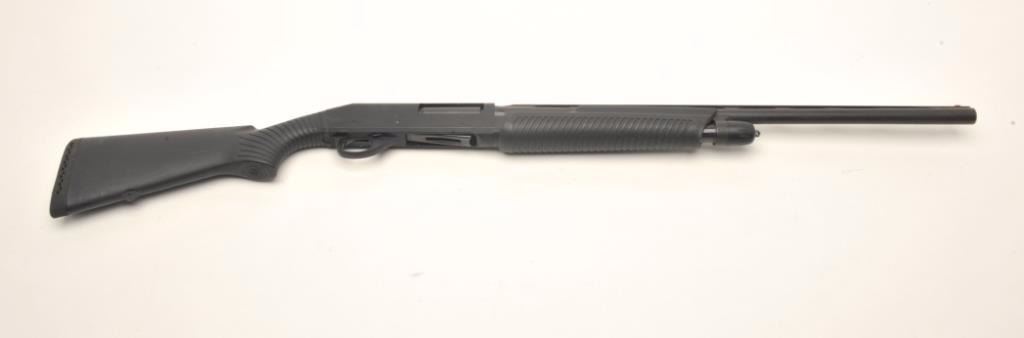 Stoeger Model P 350 pump shotgun, 12 gauge, serial #712492. The shotgun is in good overall condition with a 26” barrel with a full-length ventilated rib and Hi-Viz front sight. The barrel and receiver retain themajority of their matte blue finish with small mars and light surface rust noted. The synthetic stocks are in good condition showing small mars and scrapes consistent with field use. The butt ends with a rubberStoeger marked recoil pad and a 15” LOP. The bore is very good, the action crisp and markings are sharp. Est.: $150-$300. (Modern).
