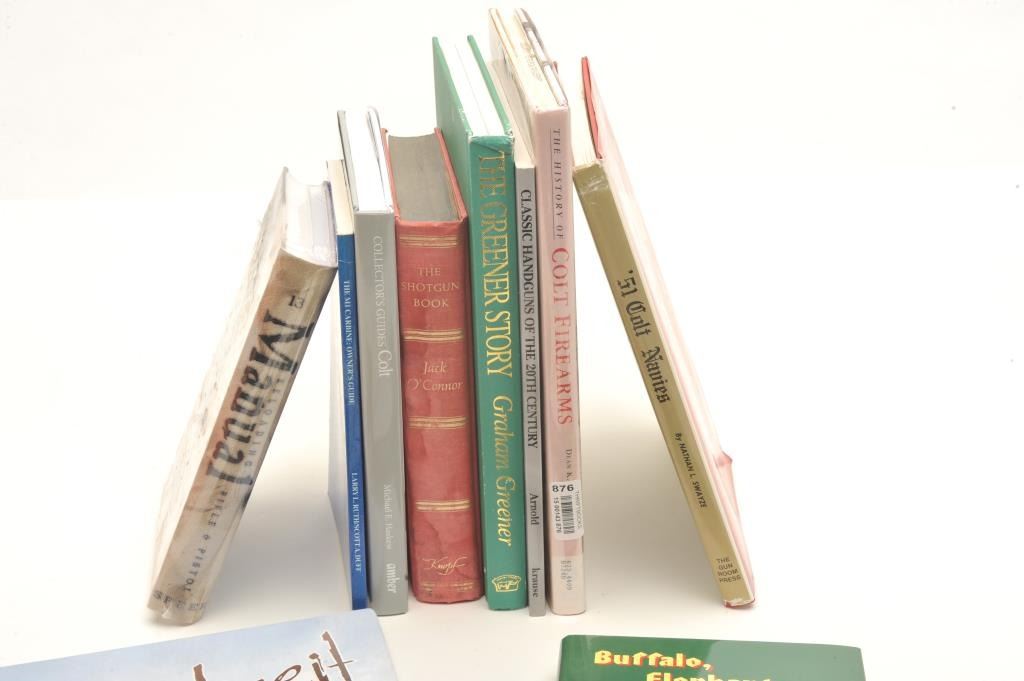 Lot of 11 reference books including “’51 Colt Navies” by Swayze; “M-1 Carbine Owner’s Guide” by Ruth and Duff; “The Greener Story” by Greener, a Speer Reloading Manual, etc.; great additions to the collector’s library! Est.: $125-$250.