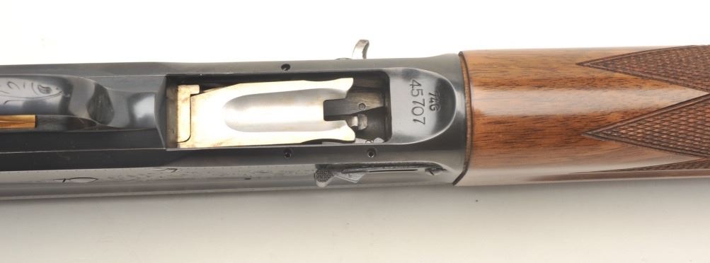 Belgian made Browning Light Twelve Model semi-automatic shotgun, 12 gauge, 29” ventilated rib barrel, blued finish, checkered wood stocks, S/N 74G45707, in overall excellent condition displayingminimal handling. (Modern). Est.: $400-$800.
