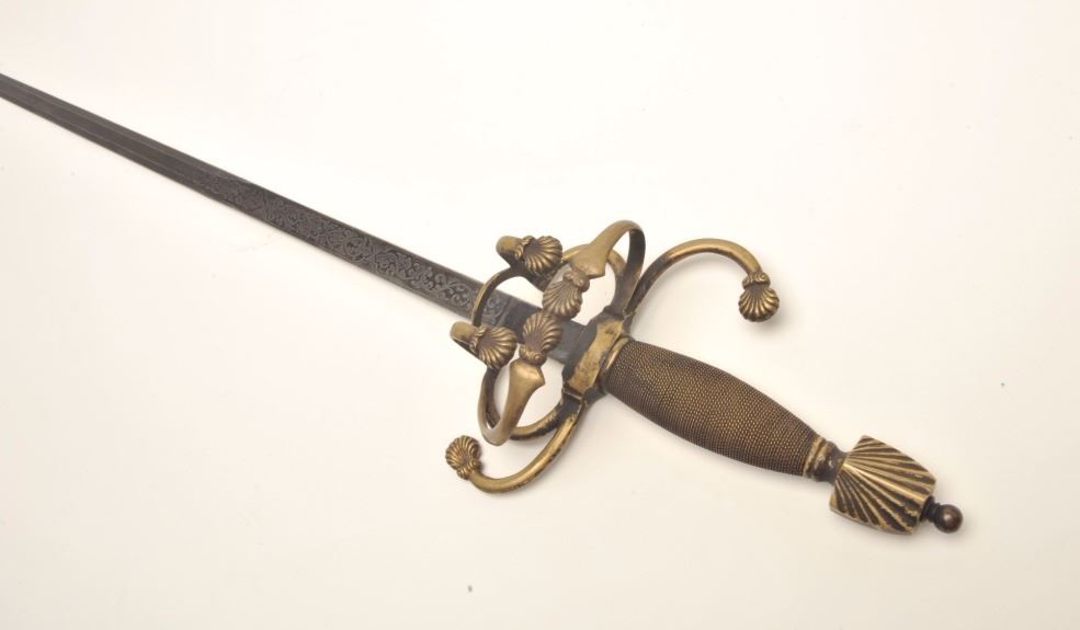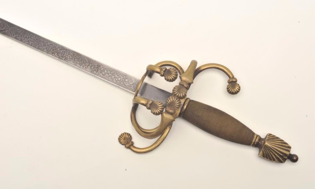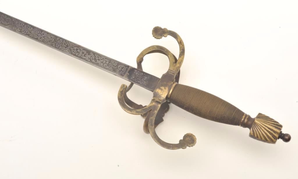 Lot 1448 Early 20th century rapier manufactured in the 17th century style. The sword has a 31” etched blad