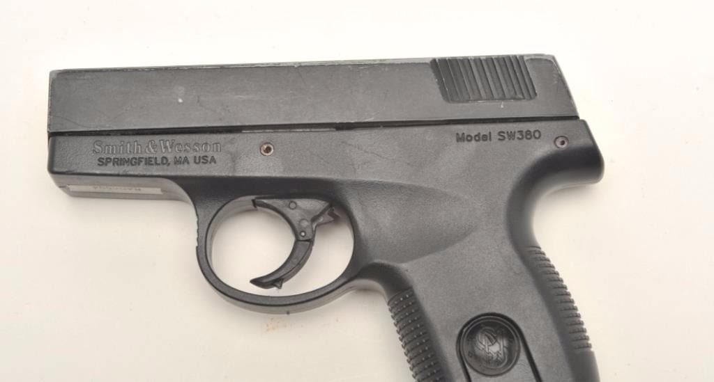 Smith & Wesson Model SW380 pocket semi-automatic pistol, .380 caliber, 3” barrel, overall good to very good used condition. (MODERN/NO CALIF. SALE). Est.: $175-$350.