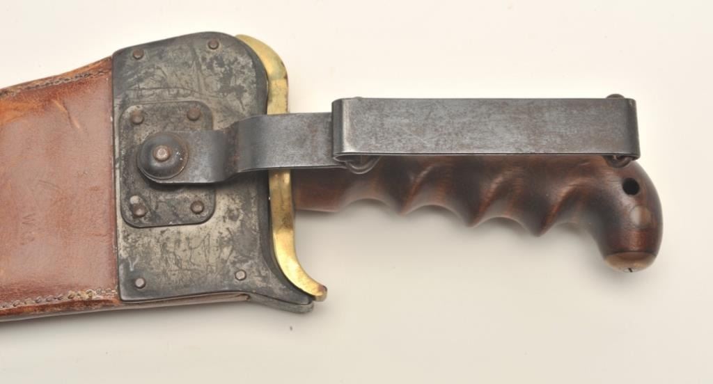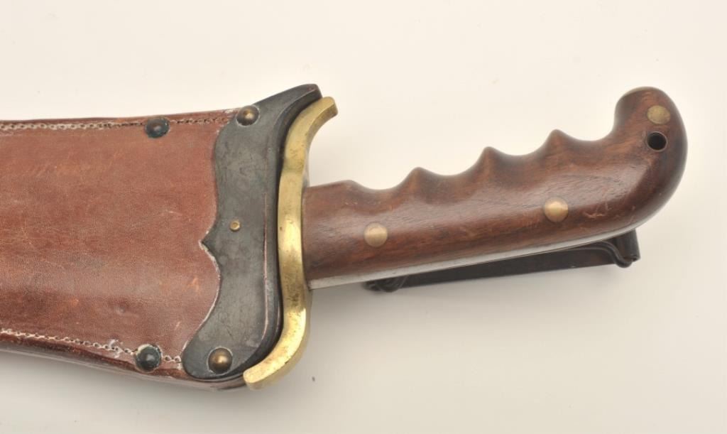 Lot 1464 U.S. 1904 Hospital Corps. Bolo Knife with leather sheath and swivel metal hanger, overall very goo