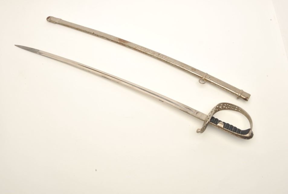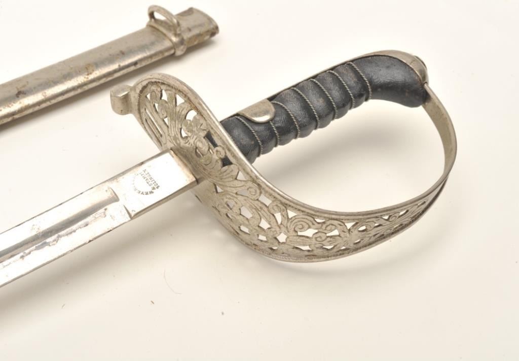 Lot 1471 German Officer’s sword signed “Weyersberg & Stamm, Solingen” with metal scabbard, approximately 37