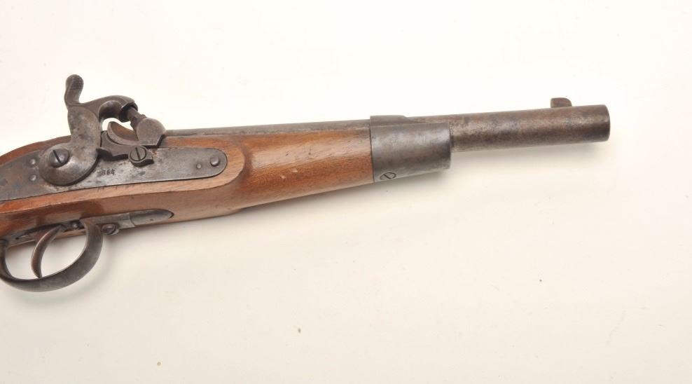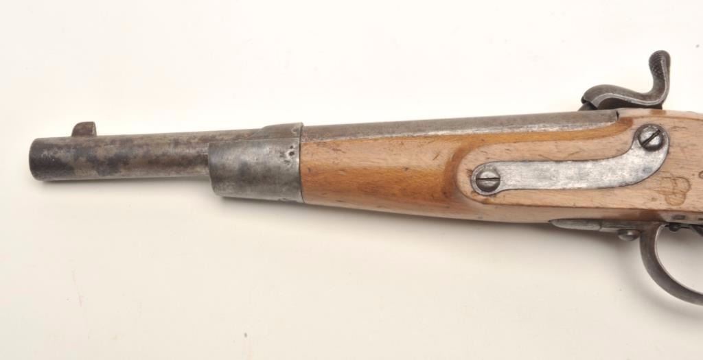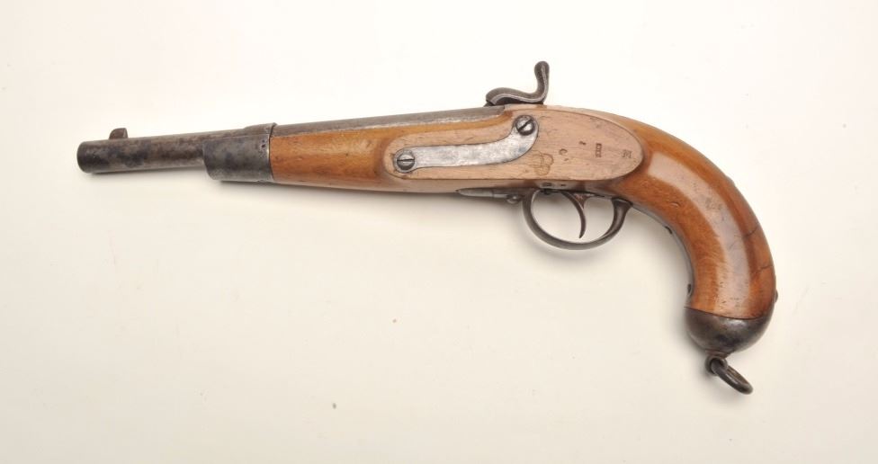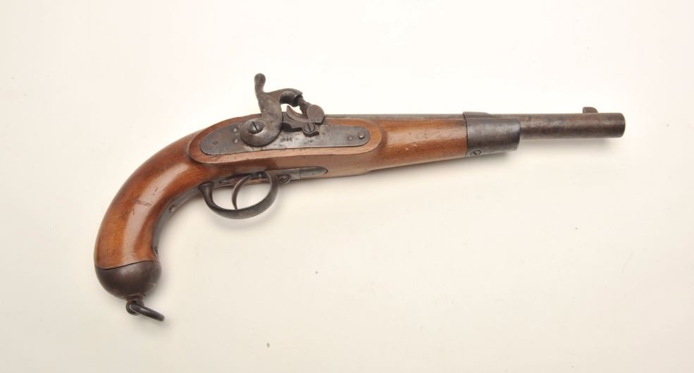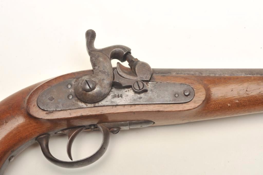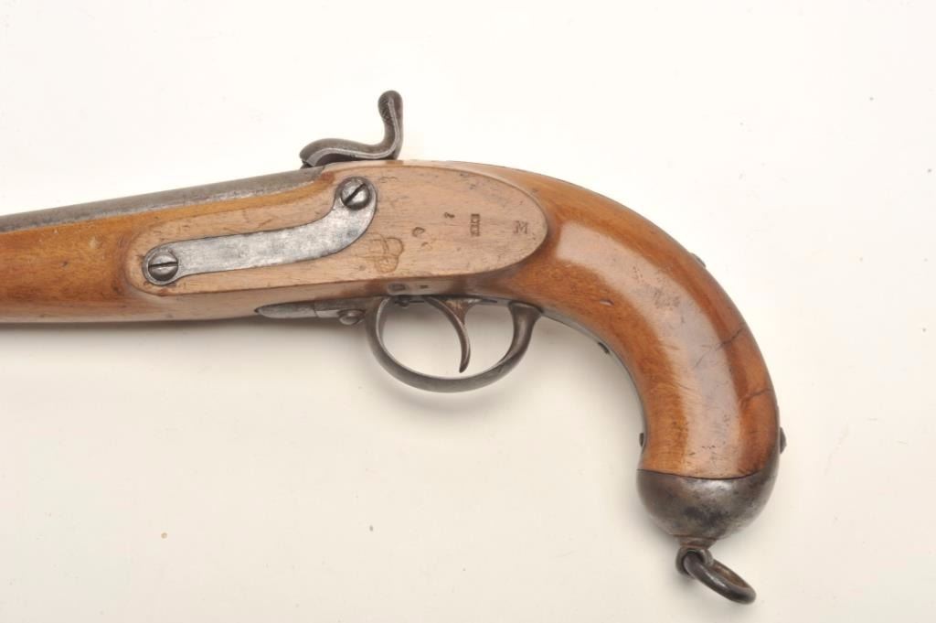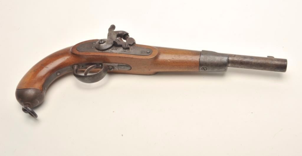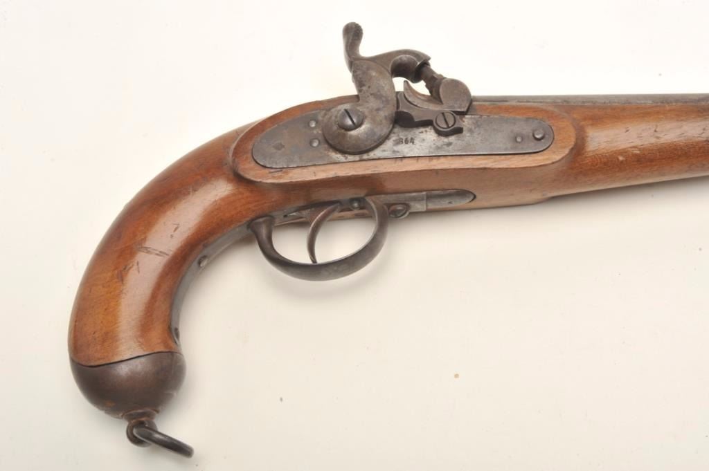 Lot 1475 Percussion Austrian single shot horse pistol, .54 caliber, 10.5” barrel, iron mounts, wood stock,