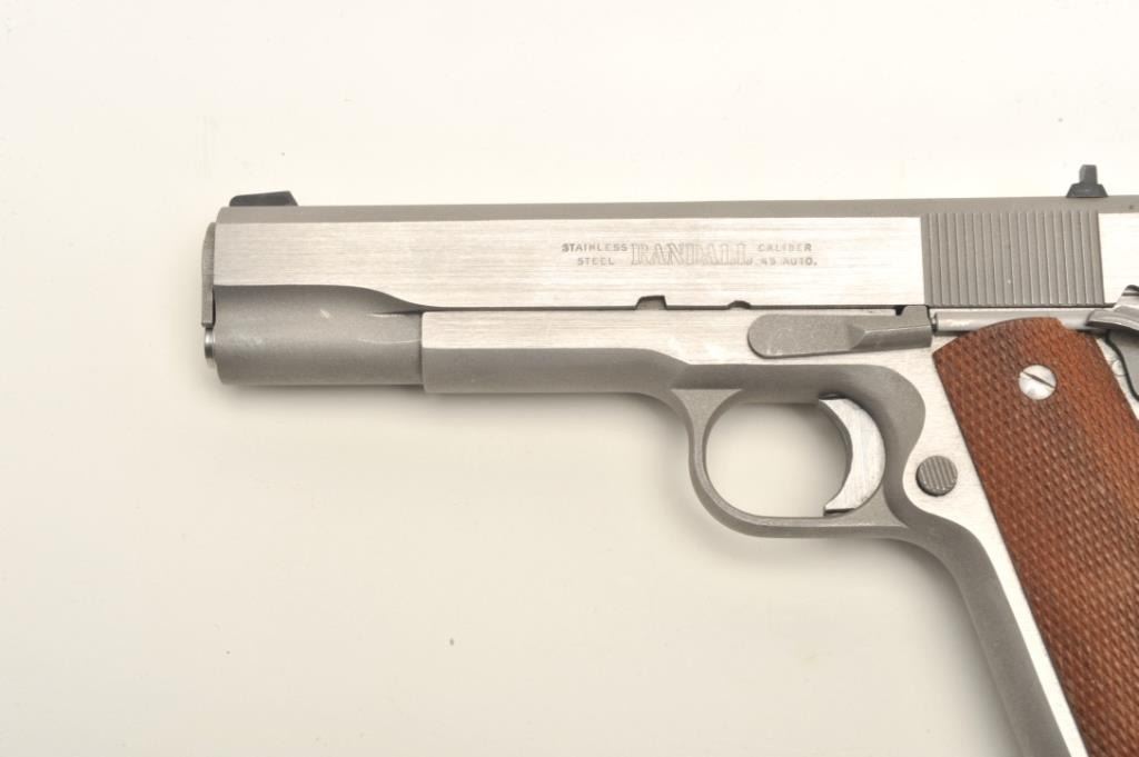 Lot 1500 Randall Service Model semi-automatic pistol, .45 caliber, 5” barrel, stainless steel, checkered wo