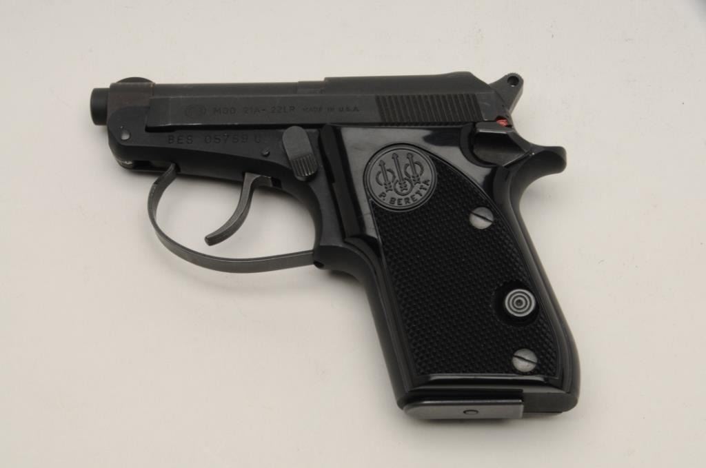 Lot 1511 Beretta Model 21A semi-auto pistol, .22 LR caliber, serial #BES057590. The pistol is in very good