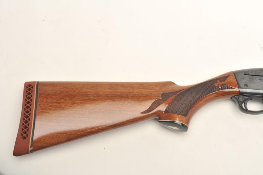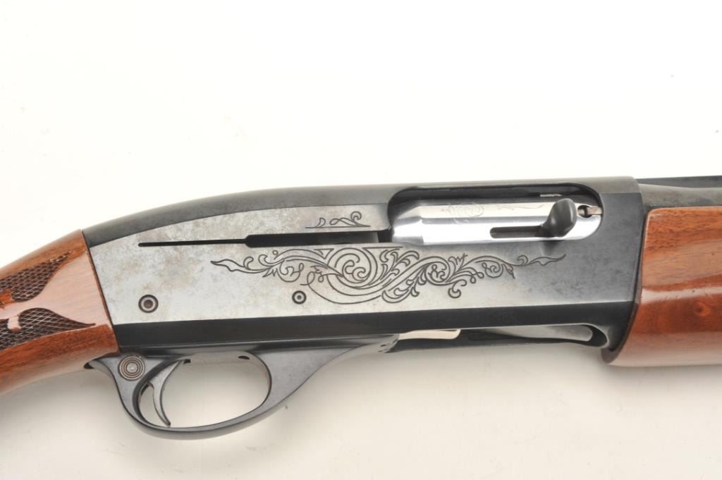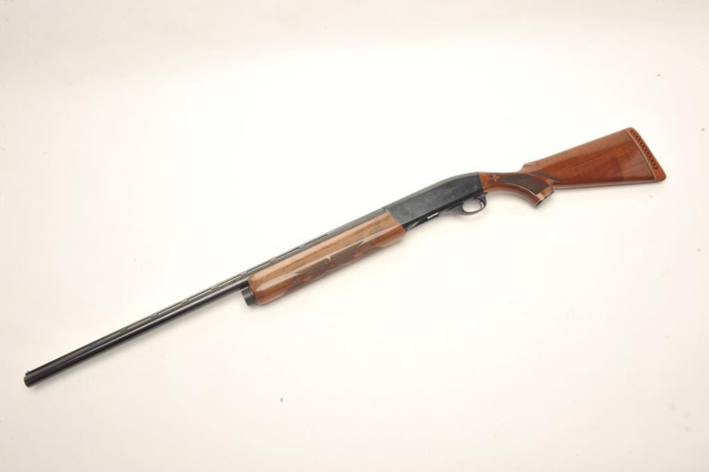 Remington Model 1100 semi-automatic shotgun, 12 gauge, 28” ventilated rib barrel, blued finish, checkered wood stocks with added Pachmayr hard rubber butt pad, S/N 13240V, in overall very good condition displaying themajority of its original finish, scattered surface rust on top of barrel underneath ventilated rib, very good bore, crisp action and markings, very good wood stocks. (Modern). Est.: $250-$500.