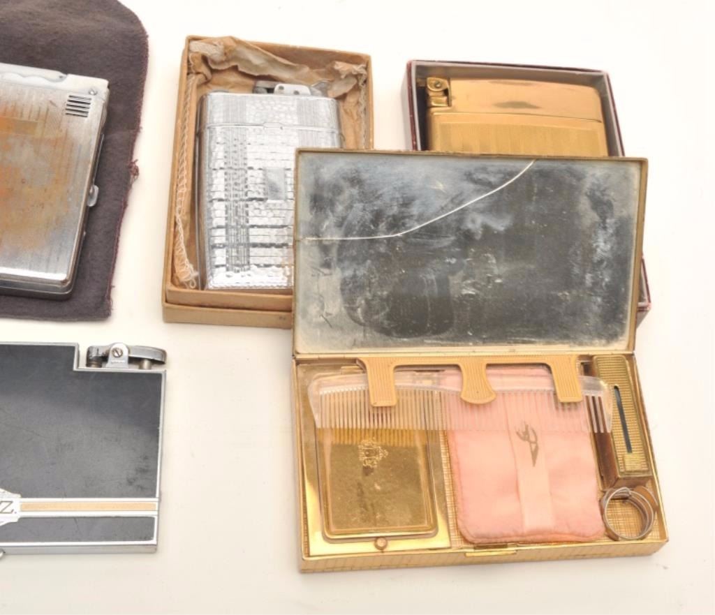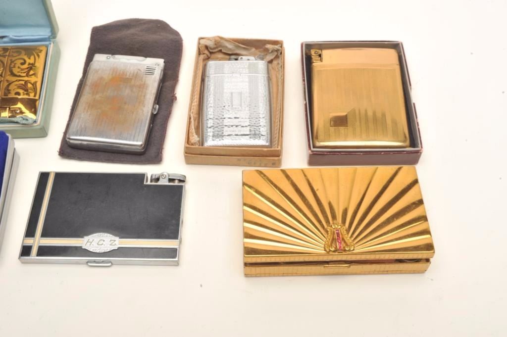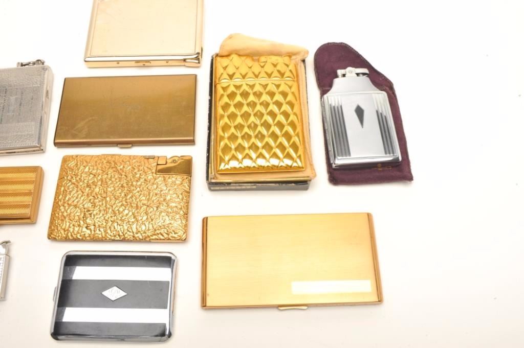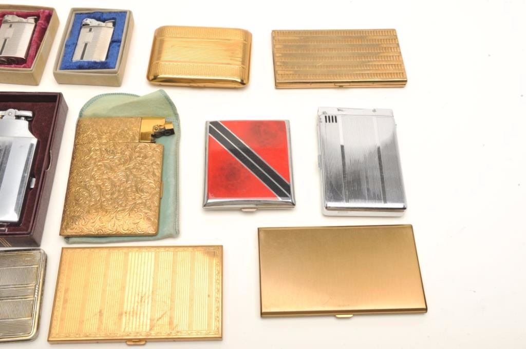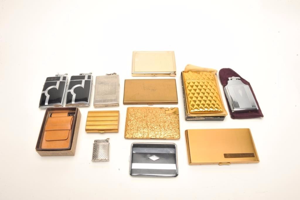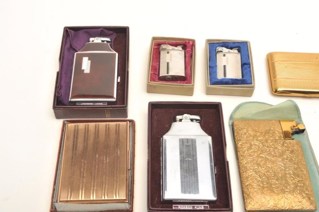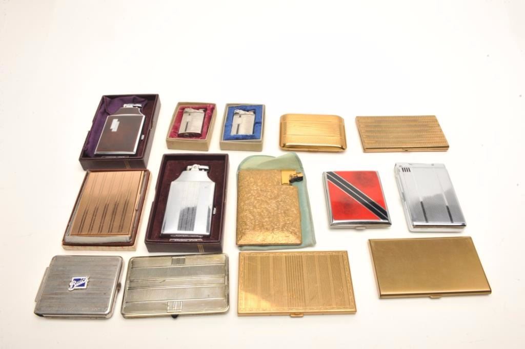 Lot 1536 Lot of vintage lighters and cigarette cases including several in their original boxes; makers like
