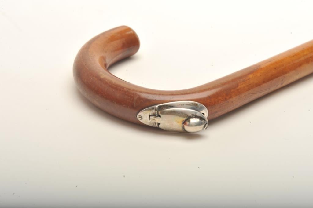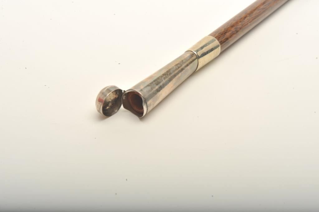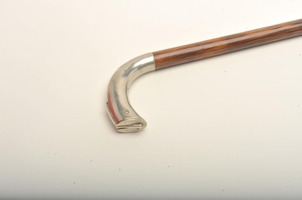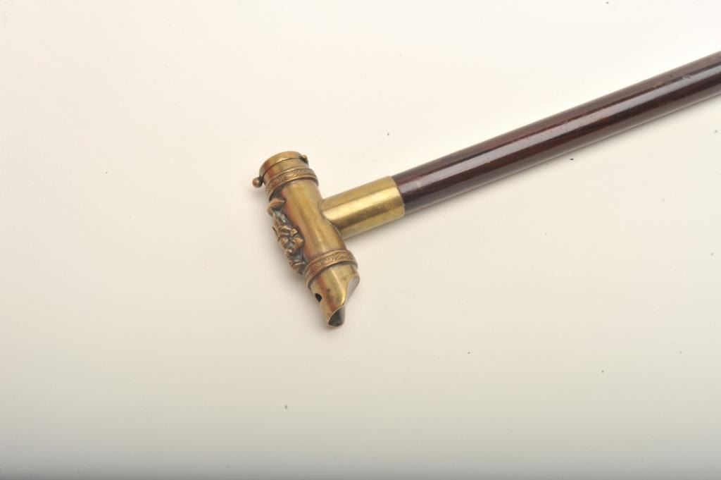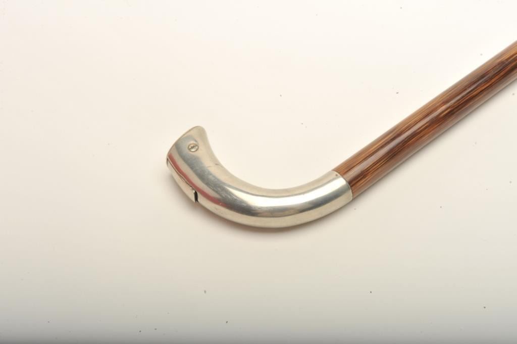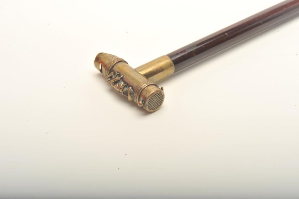 Lot of 6 Desirable Lighter Canes. 1-Massive Headed in Hallmarked Silver George V Silver coi8n on top, 1-Brass top with Girl and Whistle along with lighter, 1-Ronson patent De-Light, 1-Silver top unmarked, 1-NickelSilver top unmarked, 1-Silver top for matches with trapdoor. All good to very good conditin with use and normal wear. Est:$600-1,200