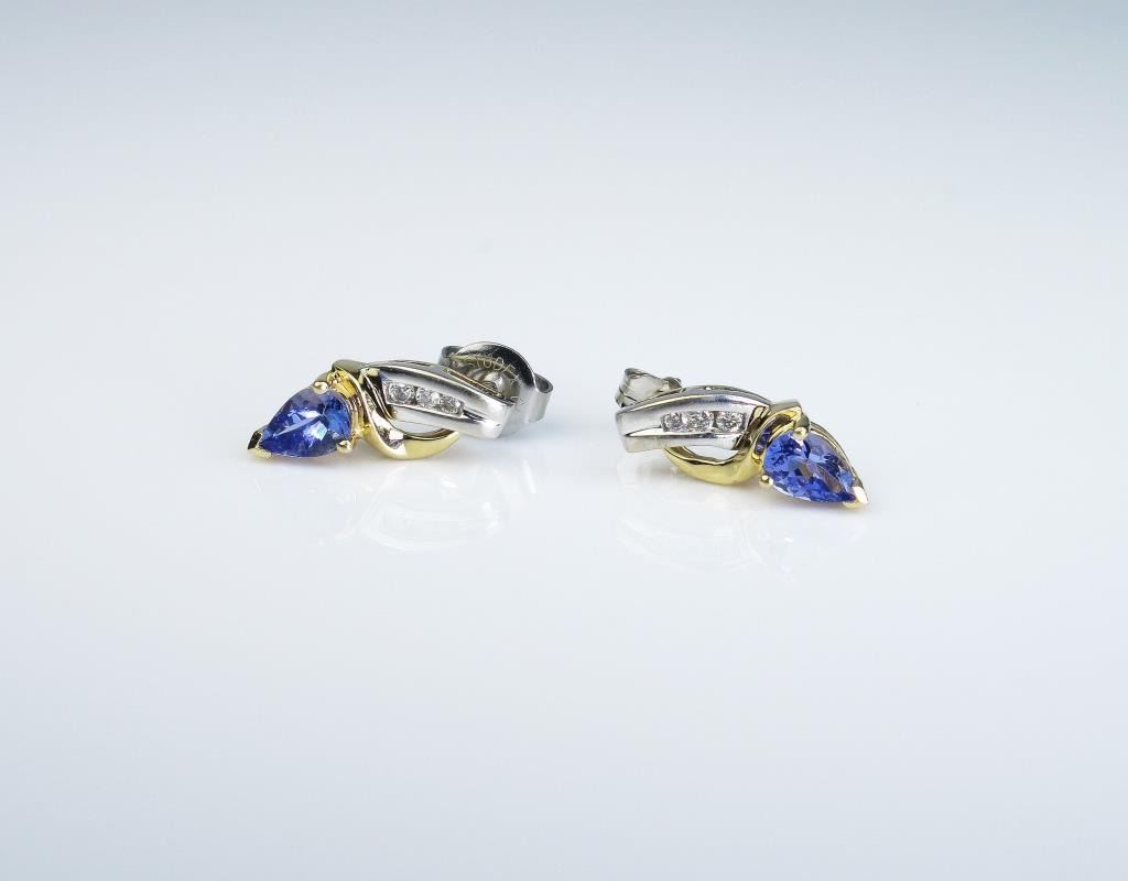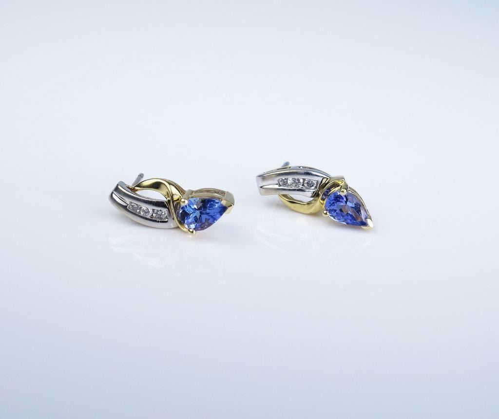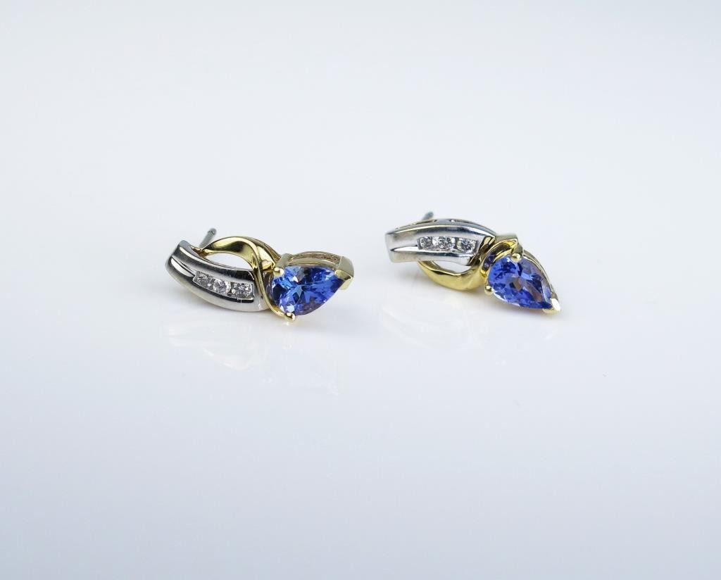 Lot 1565 Nice ladies earrings set with fine Tanzanites and channel set diamonds set in 14 karat two-tone go