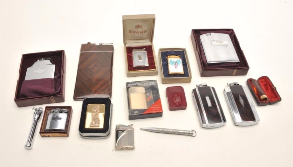 Lot 1569 Lot of vintage lighters including those by makers Evans, Ronson and Zippo; various sizes and a num