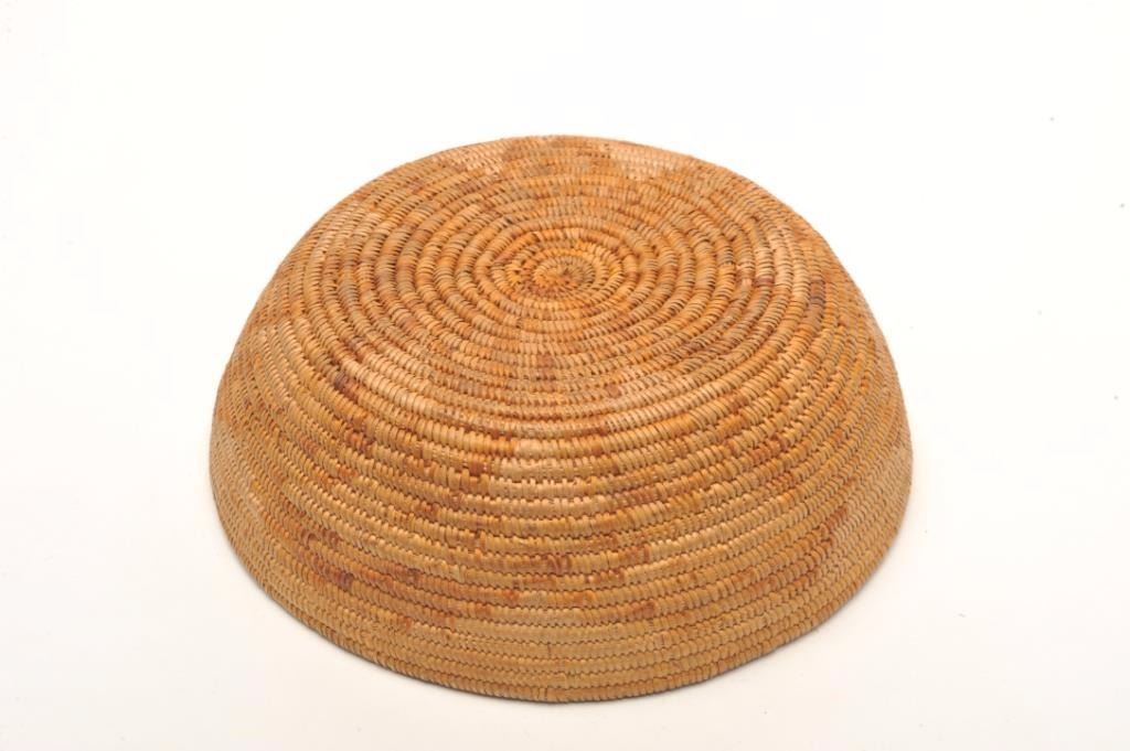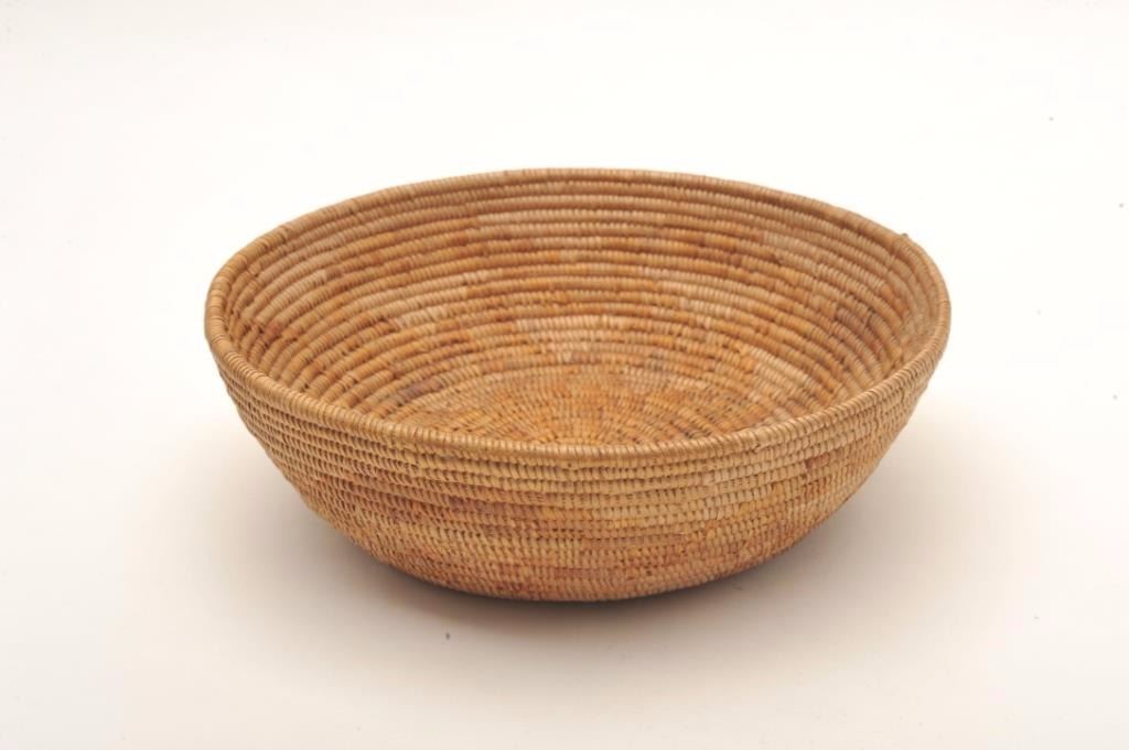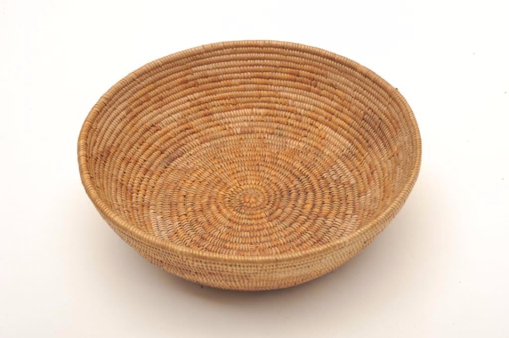 Class C California Mission basket circa 1890-1900's. Approx 11 1/2" across. Normal aging. Near fine with no rim damage. Est. $500-$1,000.