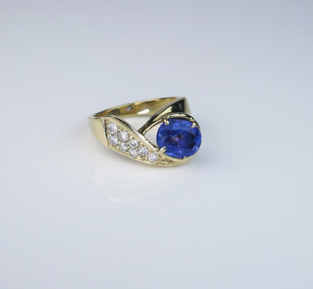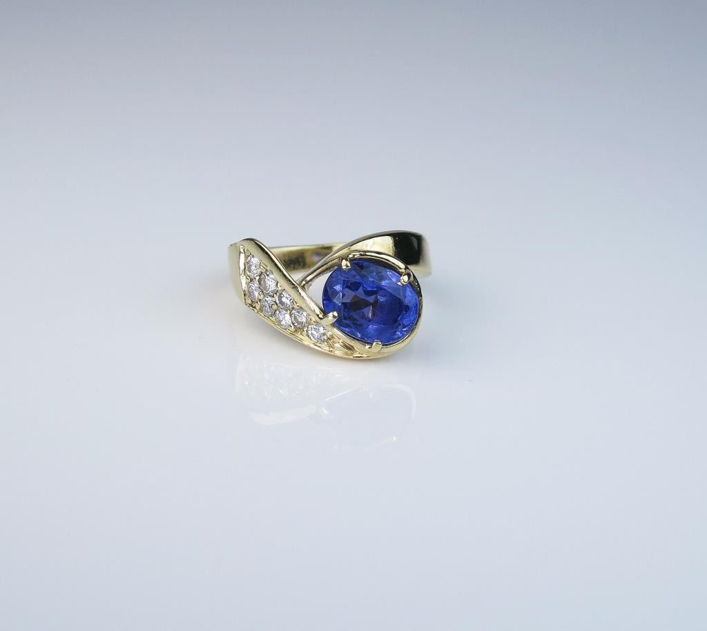 Lot 1596 Beautiful Custom Made Tanzanite and Diamond Ring featuring an oval tanzanite weighing approx. 2.50