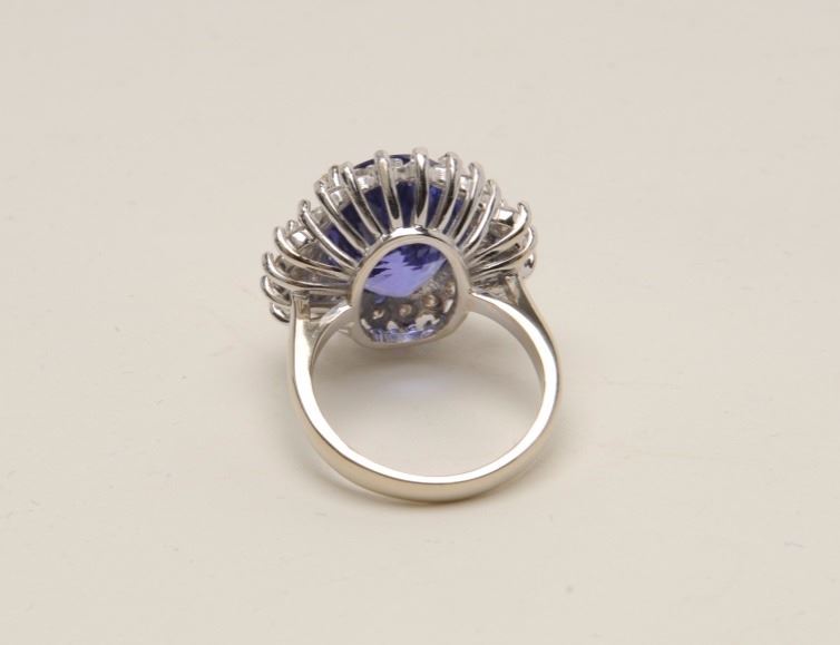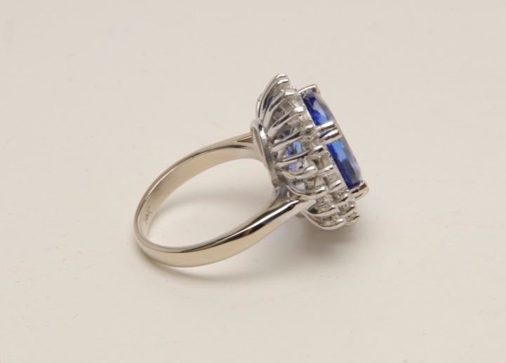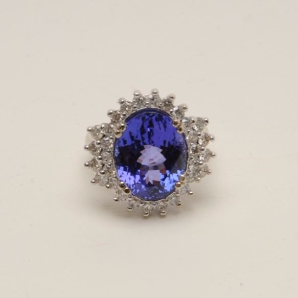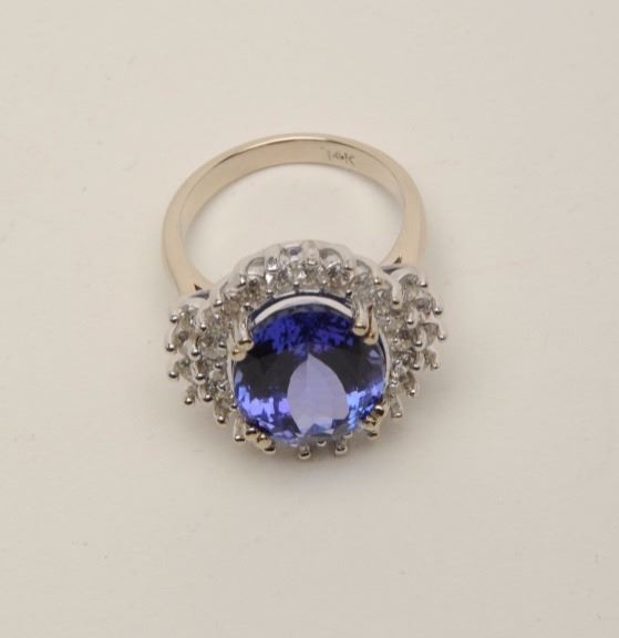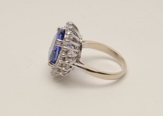Lot 1637 One ladies ring in 14k white gold set with a fine oval tanzanite weighing approx 10 ct and diamond