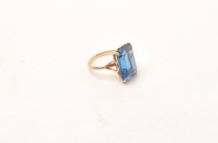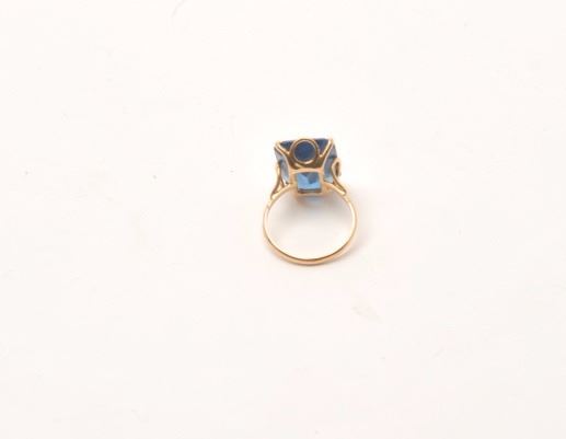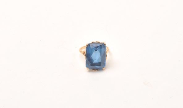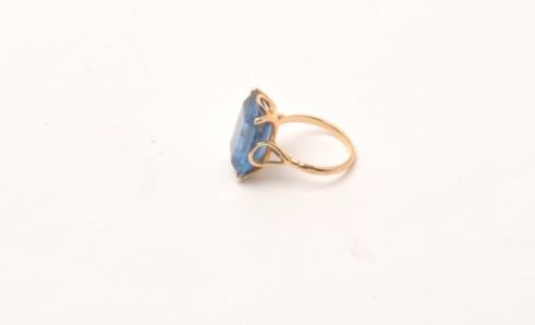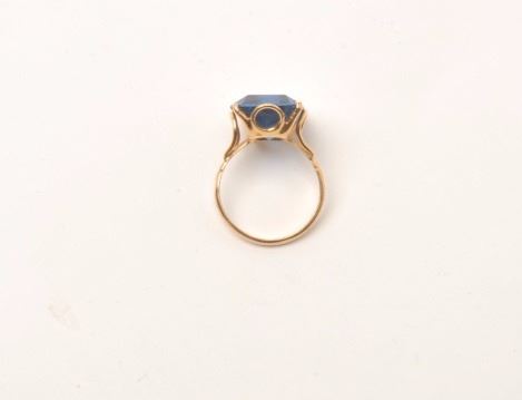 Lot 1647 18kt gold vintage ladies ring mounted with lab created sapphire of approx. 8ct. GIA appraised high