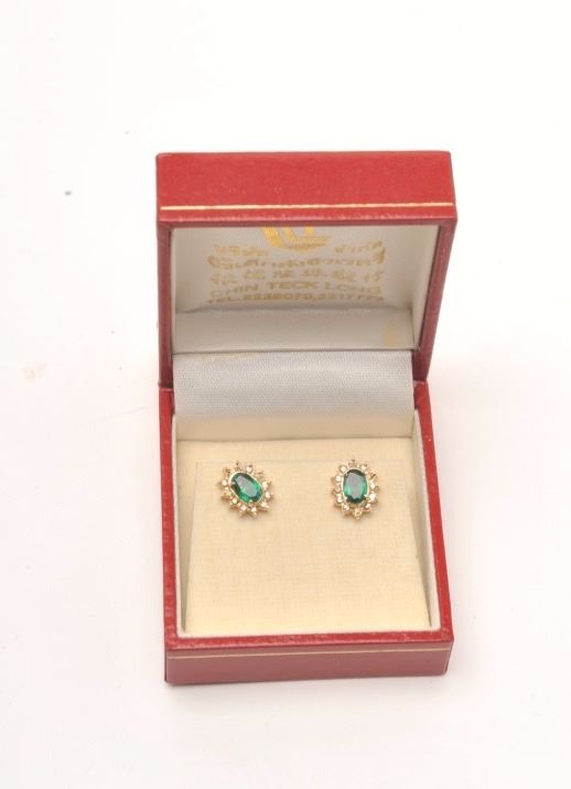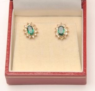 Lot 1648 2 oval cut natural emeralds approx 2 ct estimated wt mounted in 14kt yellow gold with 24 round dia