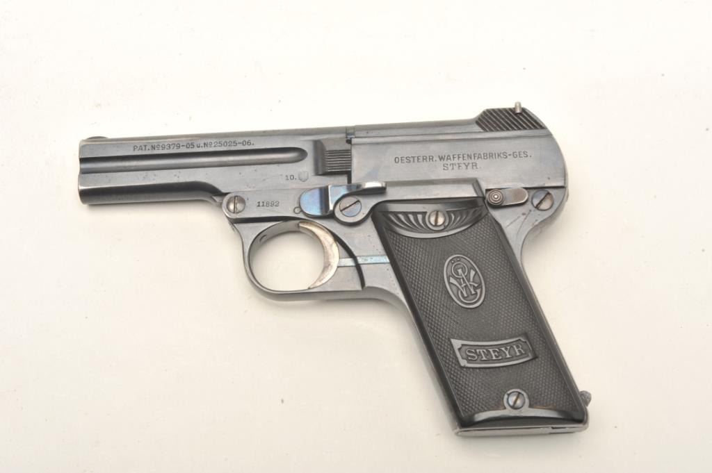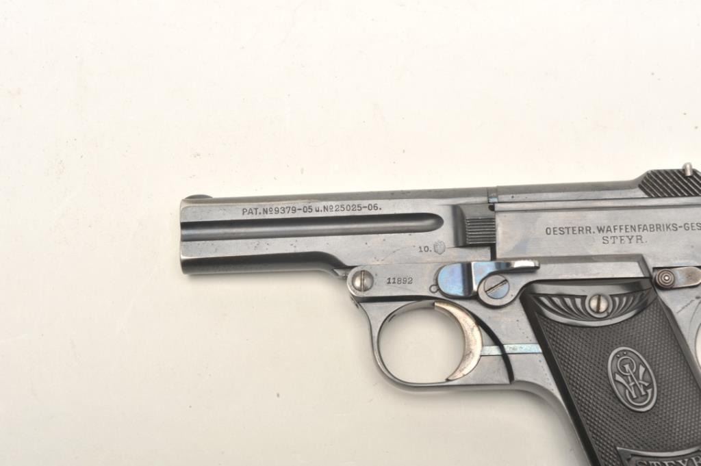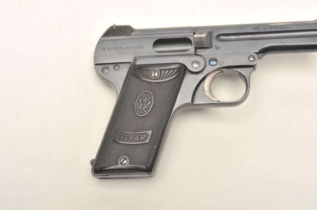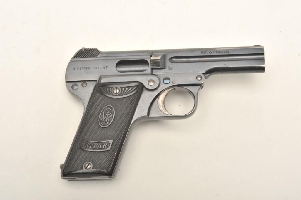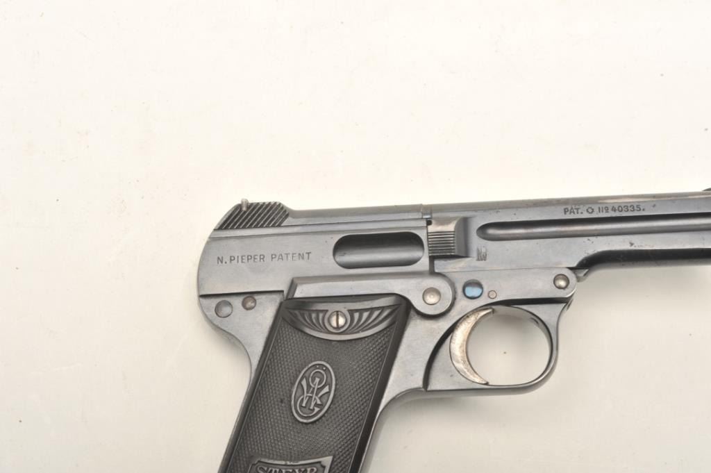 Lot 1661 Steyr Semi-Auto pistol in .32 ACP cal. (Pieper’s patent), S/N 11892. In near fine condition. 90%-9