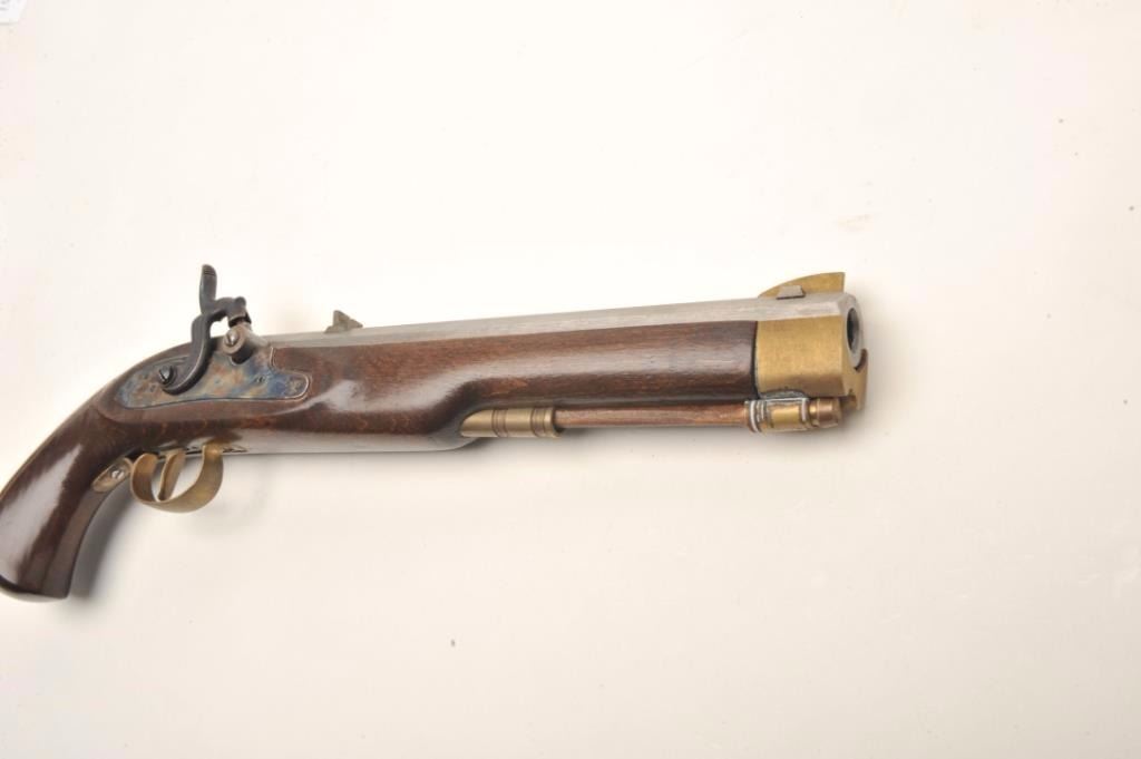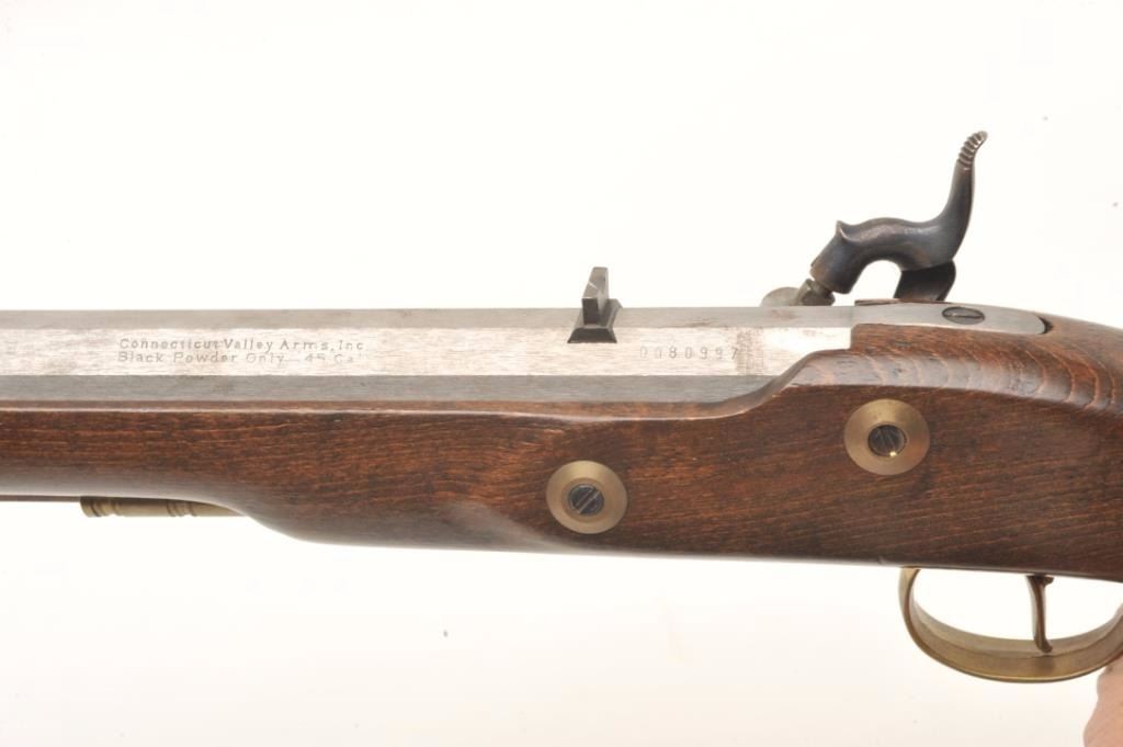 Reproduction percussion Kentucky style pistol by C.V.A. in .45 caliber. “Mountain Man” style. (Percussion) Est.: $125-$250