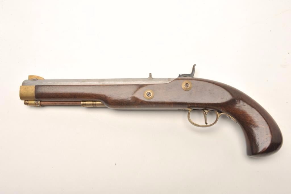 Lot 1673 Reproduction percussion Kentucky style pistol by C.V.A. in .45 caliber. “Mountain Man” style. (Per
