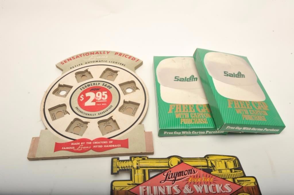 Lot 1765 Bonanza lot of vintage tobacco related accessories including an Evans Automatic Lighter store disp