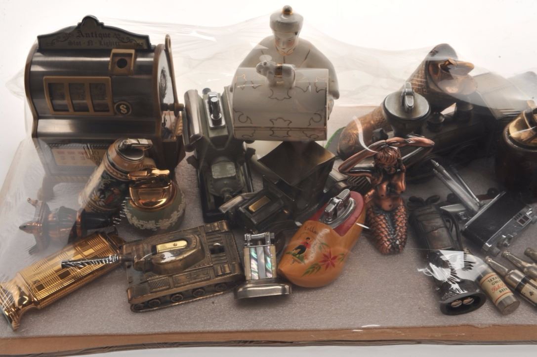Lot 1814a Bonanza lot of misc. novelty lighters and tobacco accessories including a number of items marked “