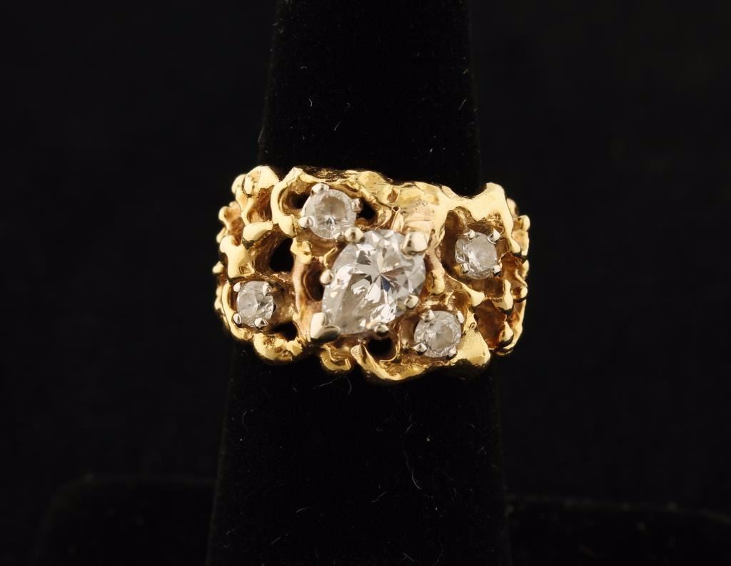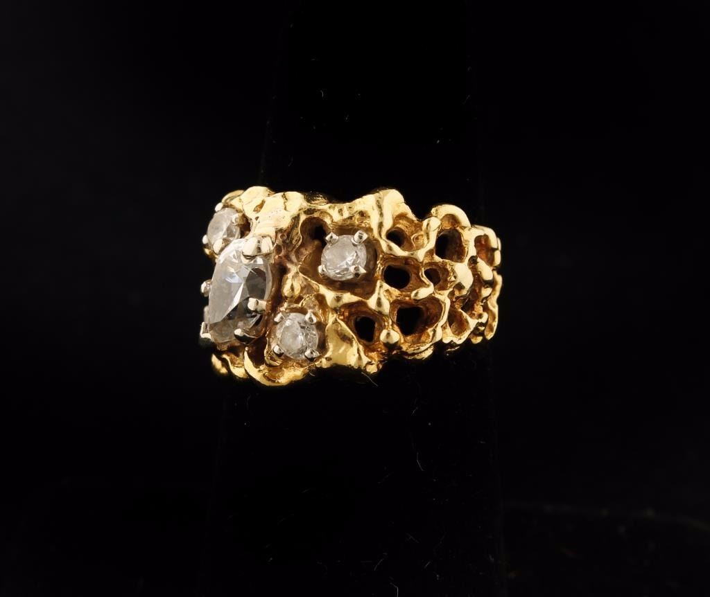 Lot 1818 Vintage wrought gold 14K ring set with CZ stones (Tests 12-14K). Est.: $300-400