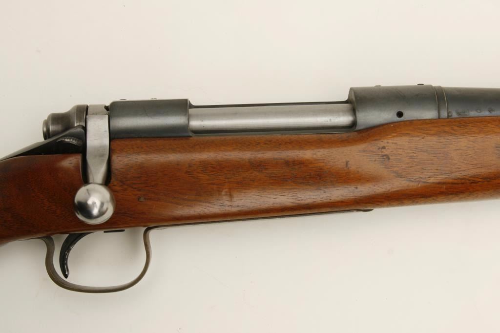 Remington Model 721 bolt action rifle, .300 H&H Mag. caliber, 26” round barrel, blued finish, wood stock, S/N 156581. This gun is in overall very good to fine condition showing the majority of its original bluefinish, very good to fine bore, crisp action and markings, very good wood showing scattered scratches from carry and storage; Pachmayr hard rubber butt pad. (Modern). Est.: $500-$1,000.
