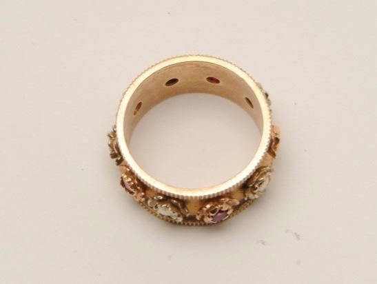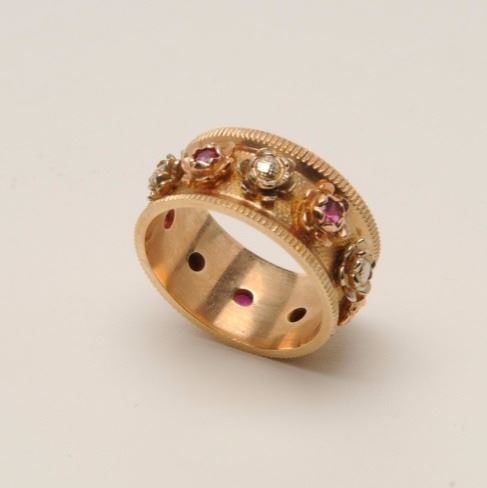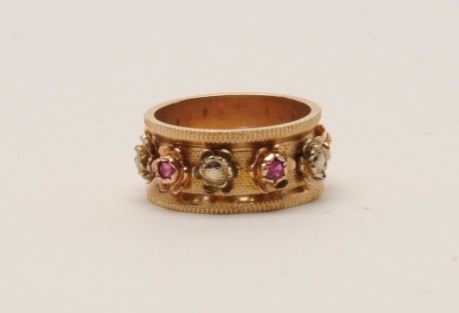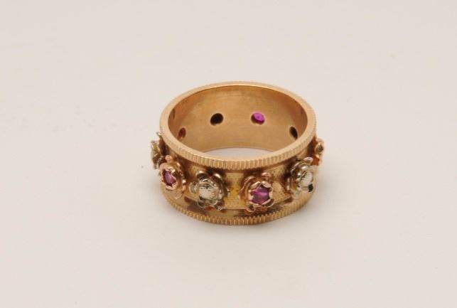 Lot 1904 Vintage gold band with ruby pearl. 14K and maker marked. Est.: $100-$200
