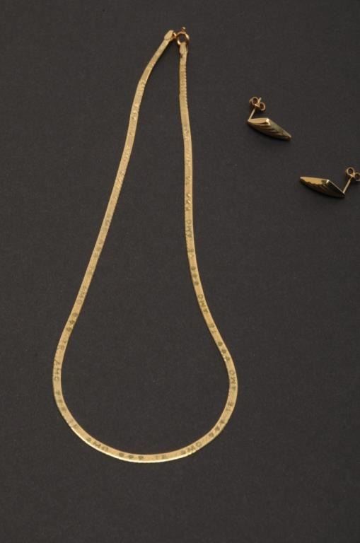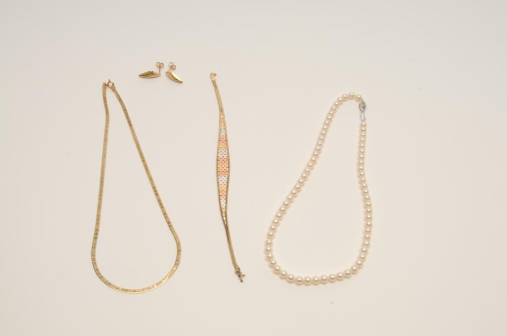 3 necklace sets. 2 Gold and 1 pear. Est.: $100-$200