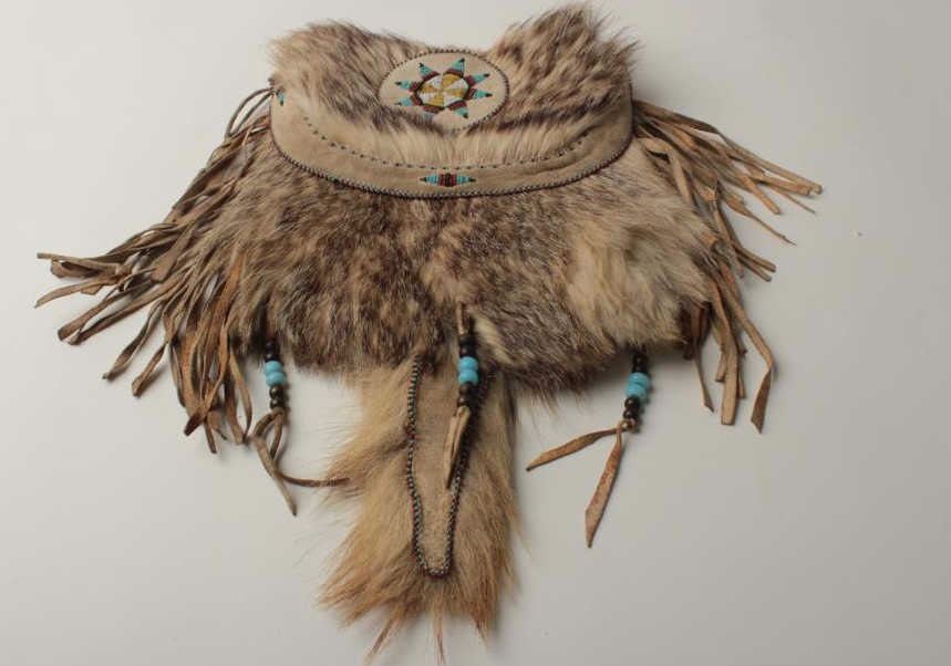 Lot 1969 Contemporary to last 50 years Indian trappers type bag with beadwork, fringe and large old trade b