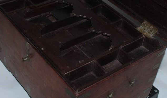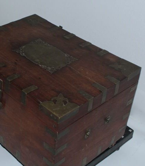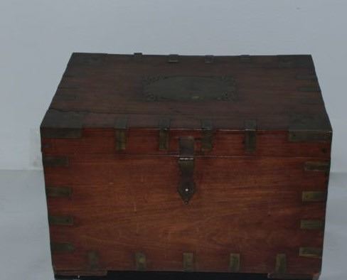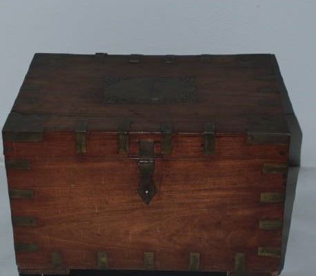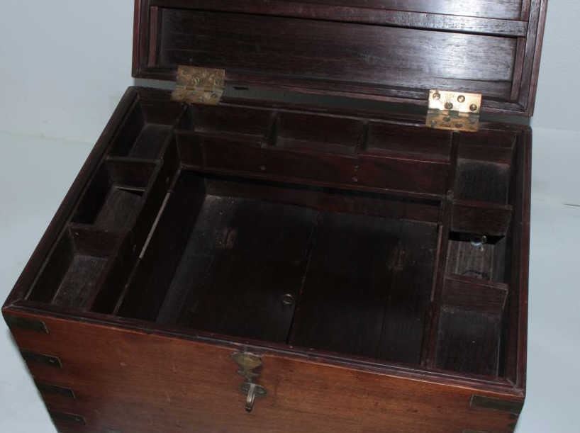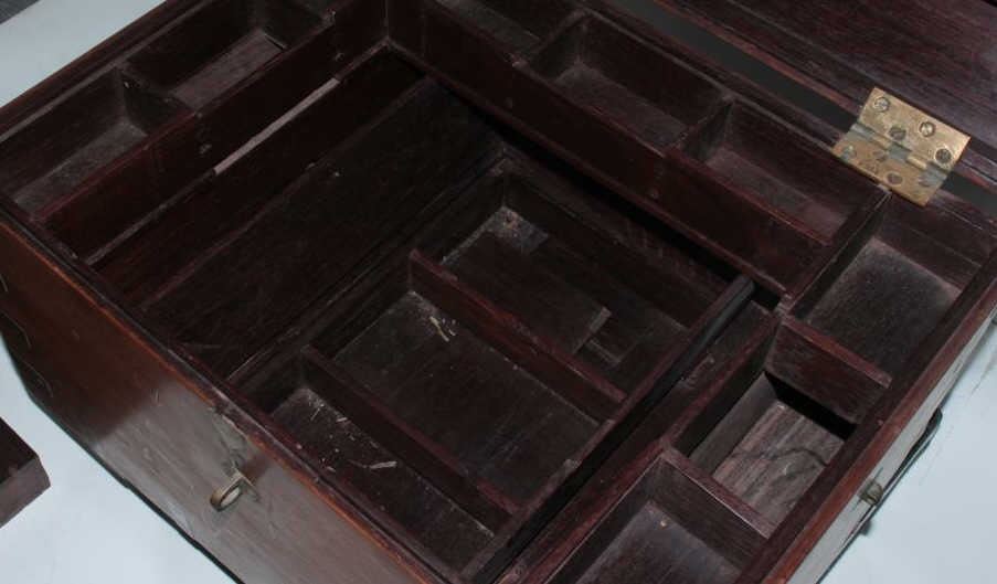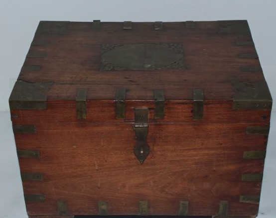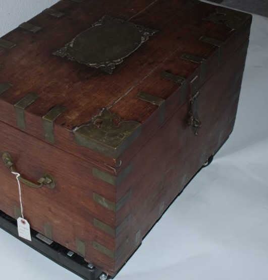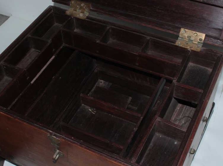 Lot 1990 Antique Specimen Chest circa 1879. The chest is constructed of hardwood with ornamental brass har