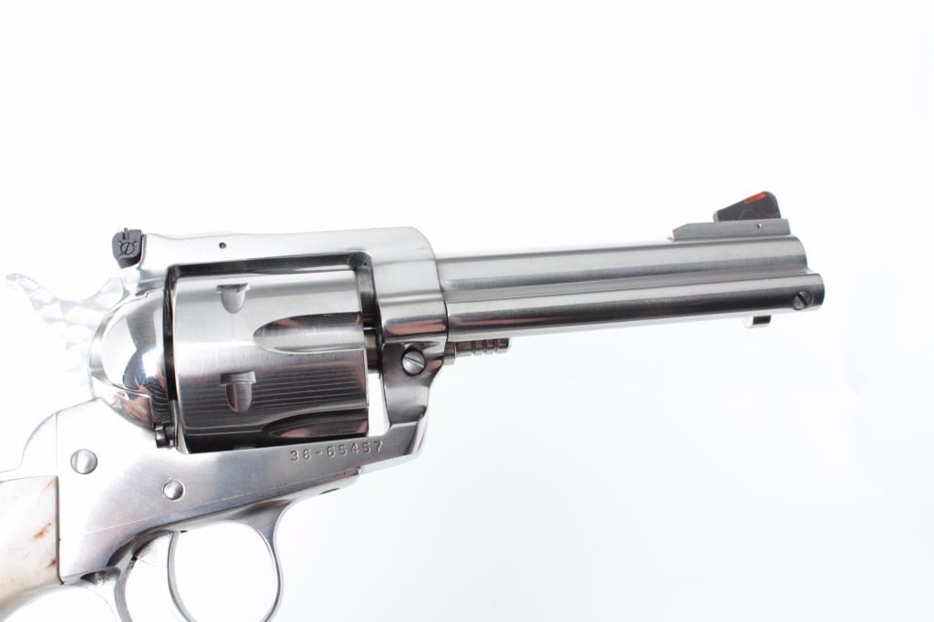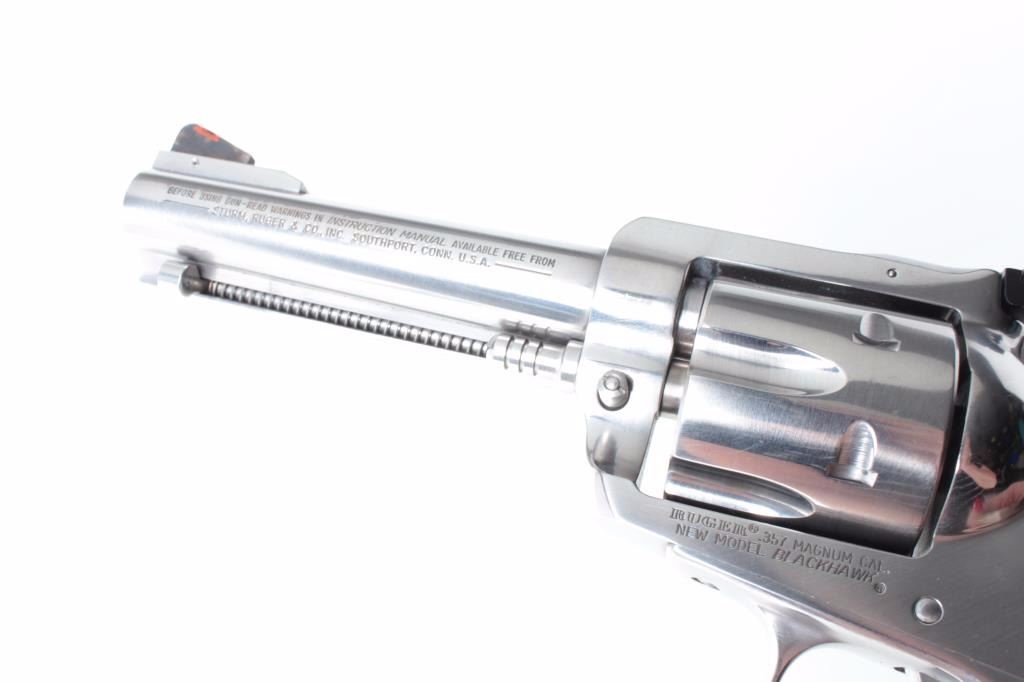 Lot 2013 Ruger New Model Blackhawk single action revolver, .357 caliber, 4.75” barrel, stainless steel, jew