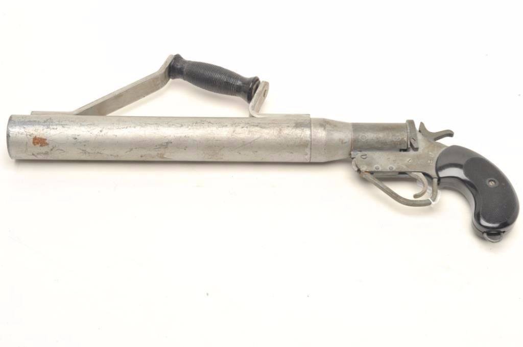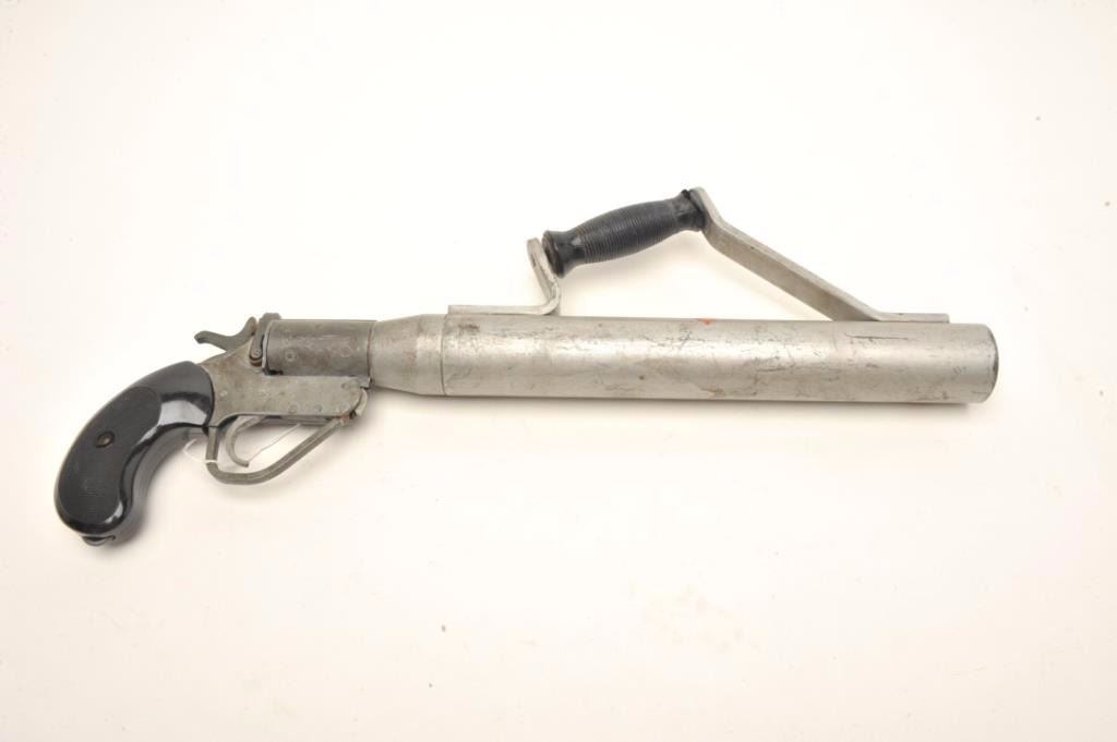 Lot 2026 Schermuly line throwing gun, British, WW II era; approximately 20” overall with handle attached to