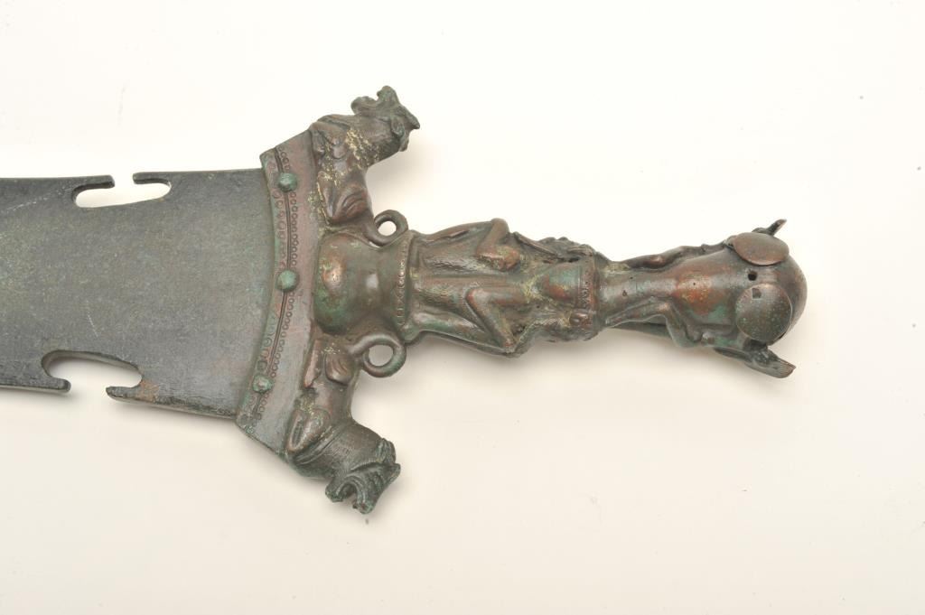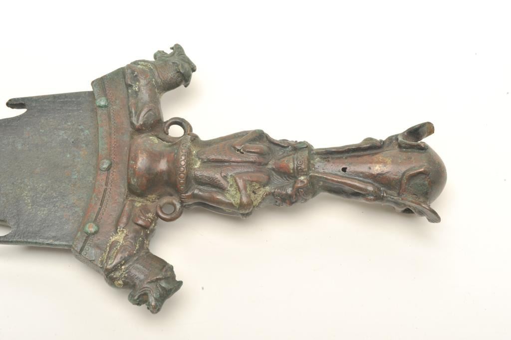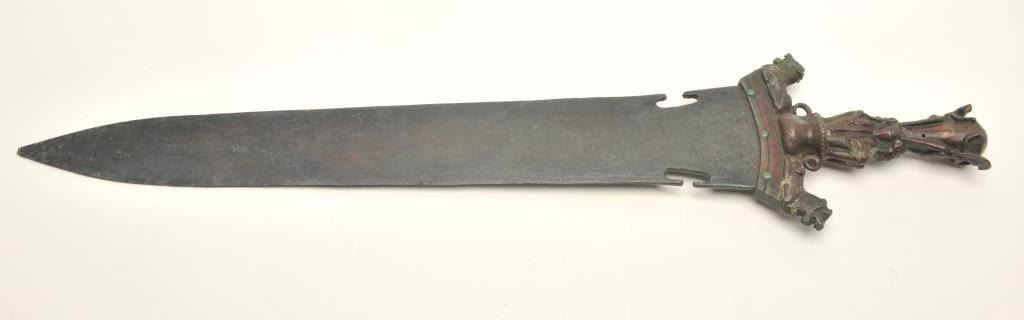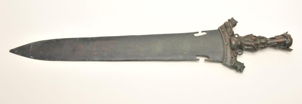 Victorian copy of a large bronze dagger, approximately 27” overall with a 20” blade; beautiful dark patina. Est.: $300-$600.