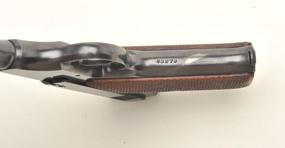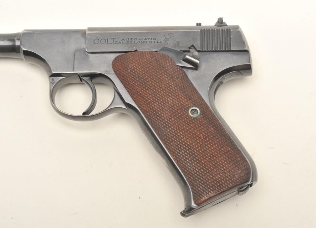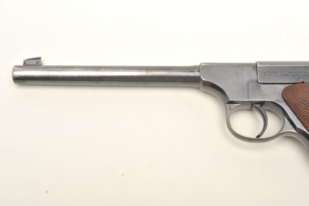 Lot 2035 Colt Pre-Woodsman semi-auto pistol. .22 Long Rifle caliber, serial #49279. The pistol is in very