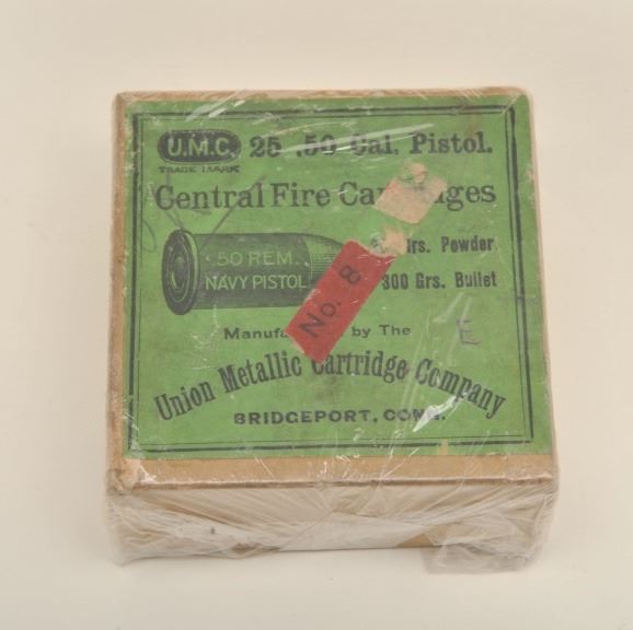 Full box of UMC .50 caliber Navy pistol #8 shot cartridges. Est.: $150-$300.